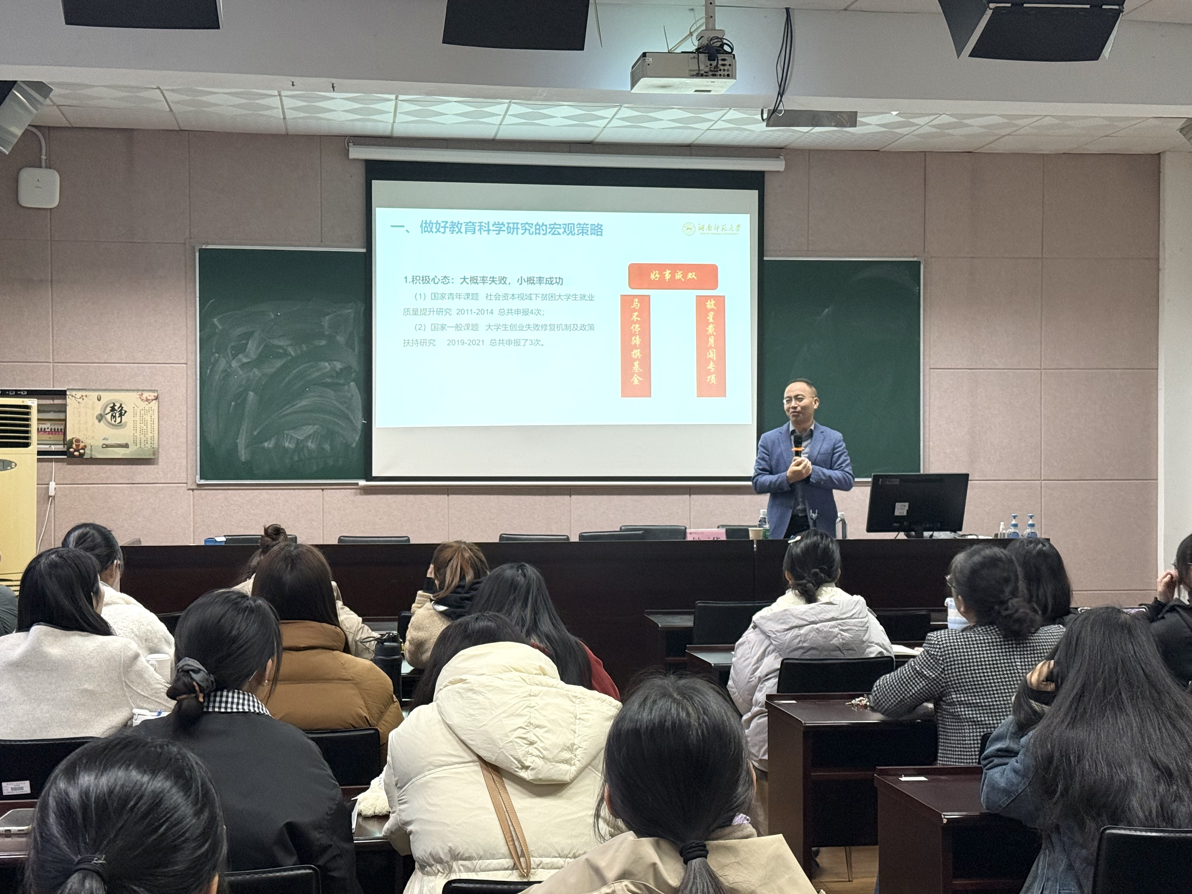 11月22日下午,由教育科学学院主办的“滨湖师范讲堂”第六十讲在1号教学楼1302教室举行。本次讲座聚焦教育科学研究的关键要素,由湖南师范大学教育科学学院教授、博士生导师钟云华主讲、学院领导彭阳红主持,教育科学学院部分教师及2024级全体教育硕士参加。