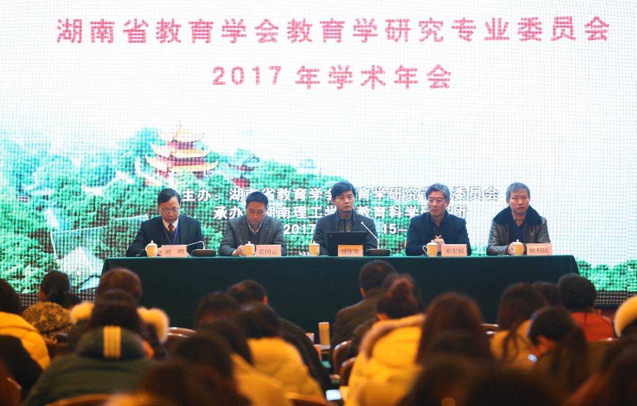 2017年12月15日—17日,湖南省教育学研究专业委员会2017年学术年会在岳阳隆重举行,年会主题为“立德树人与教育改革”,来自全省高等教育及基础教育领域的240名专家学者和业界人士参会。会议由湖南省教育学会教育学研究专业委员会主办,我校教育科学研究所承办。湖南理工学院副校长张国云教授致欢迎辞,湖南省教育学研究专业委员会理事长刘铁芳教授致开幕辞,湖南省高等教育学会秘书长、湖南大学姚利民教授代表兄弟学会致辞,开幕式由湖南理工学院教科所所长刘理教授主持。