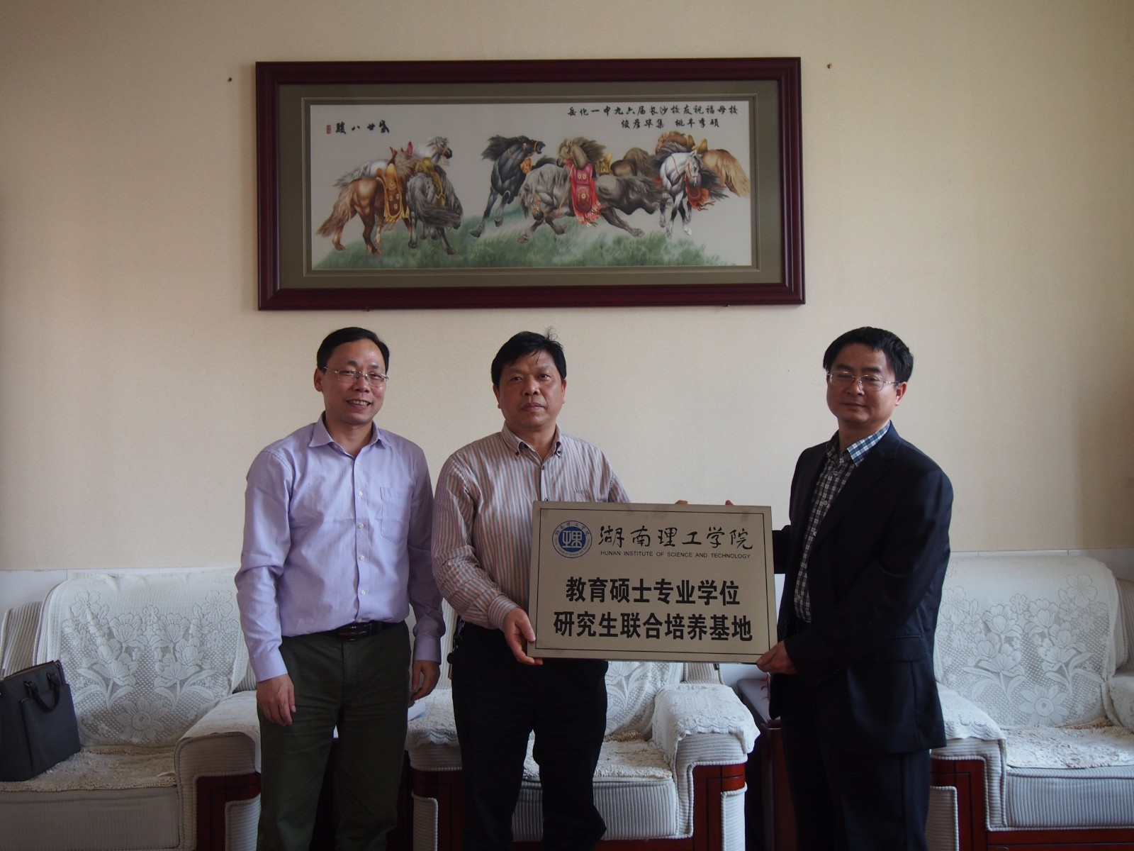 为充分发挥地方优质教育资源在我校教育硕士专业学位研究生培养中的作用,建立产学有机融合的协同育人模式,确保教育硕士专业学位研究生培养质量,近日,学校与分别与岳阳市教育科学与技术研究院、岳阳市第十五中学、岳阳市第九中学签订教育硕士专业学位研究生联合培养协议,学校教科所长刘理、研究生处长郭观七共同为三家联合培养基地授牌。