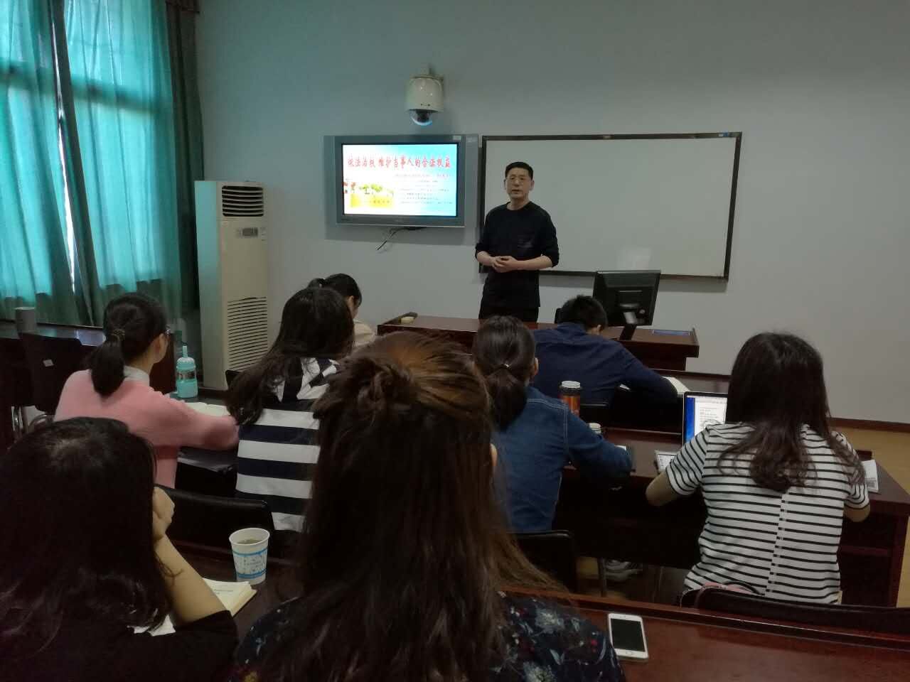 4月18日下午,岳阳市第九中学校长、特级教师杨发明在1301B教室,为我校教育管理硕士作了题为《依法治校 维护当事人的合法权益》的讲座。我校教科所部分老师、全体教育管理硕士参加。