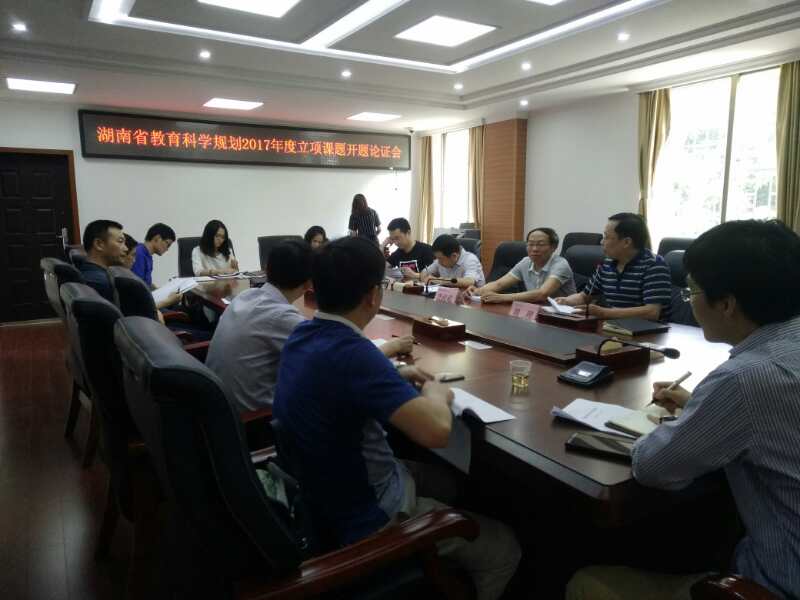 6月18日下午,教育科学研究所组织我校2017年度省教育科学规划立项课题进行了集中开题论证。湖南省教育科学规划办杨敏主任,中国地质大学高等教育研究所副所长李祖超教授,湖南师范大学唐智彬副教授以及我校教育科学研究所所长刘理教授担任开题论证专家。