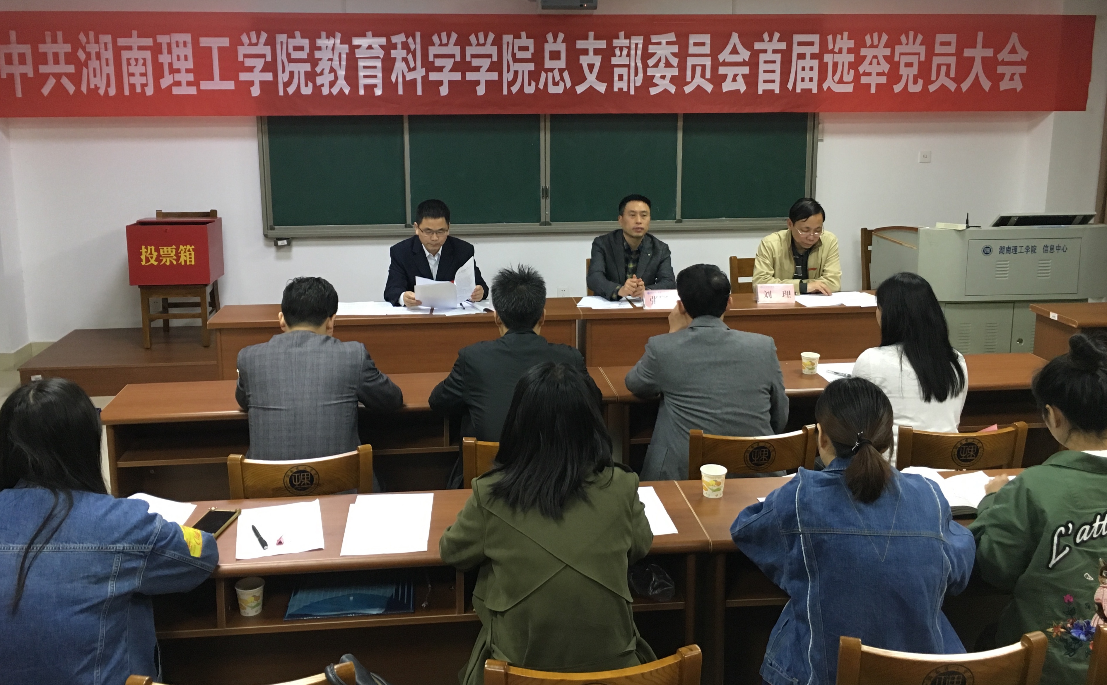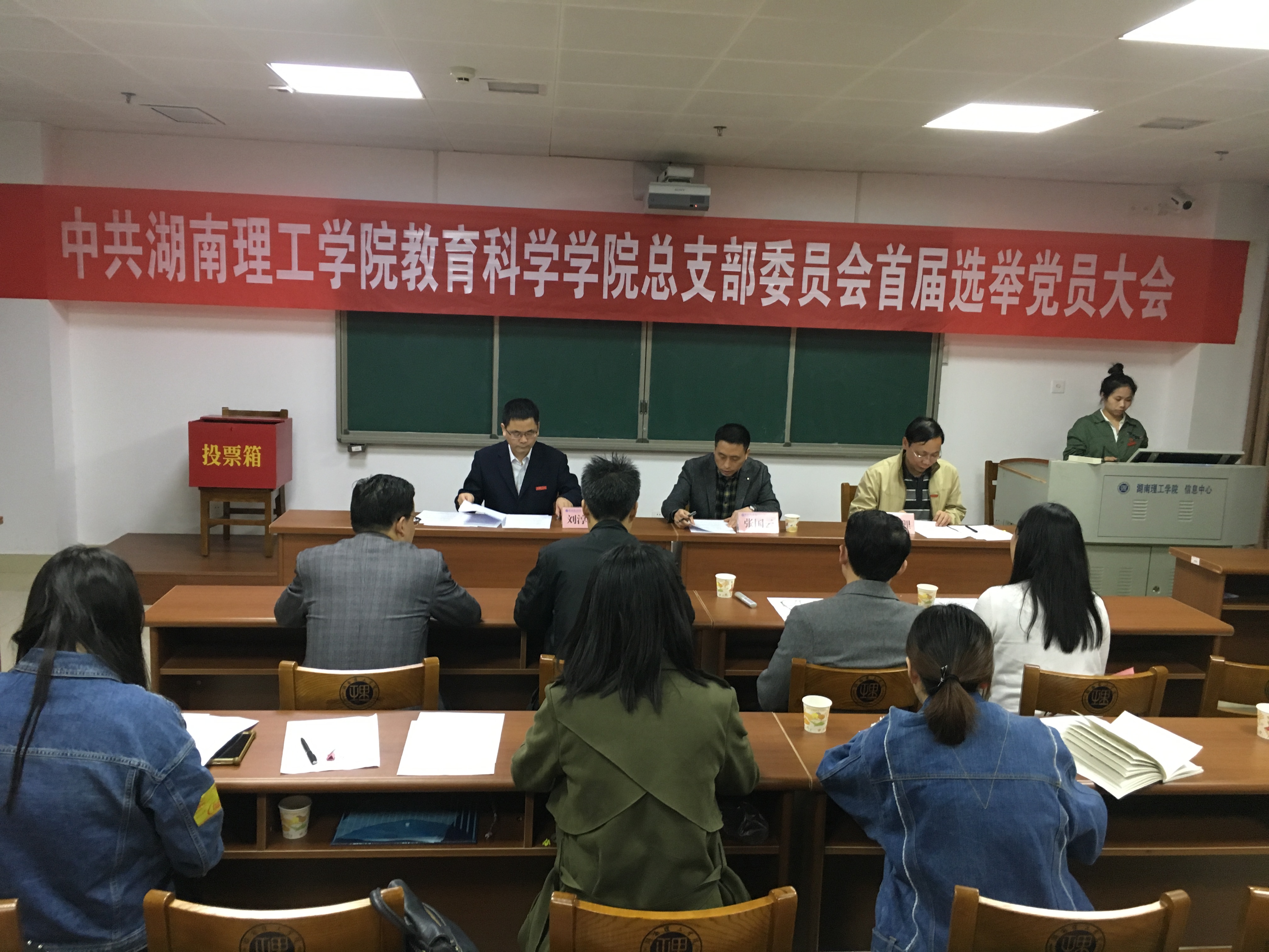 大会在庄严的国歌声中拉开帷幕。党总支书记刘淳松作大会筹备工作报告。他在报告中指出,本年度国务院学位办、国家教指委将对学校教育硕士专业学位授权点办学情况进行专项评估,迎评工作是本年度学院工作的中心。学院党总支将“围绕中心抓党建,促进事业上台”确定为学院总支首届选举党员大会的主题。随后,主持人刘理宣读校党委《关于同意教育科学学院党总支首届选举的批复》。严格按照选举程序和选举工作的各项要求,大会选举刘淳松、刘理、洪冬美三名同志为教育科学学院首届总支委员会委员。