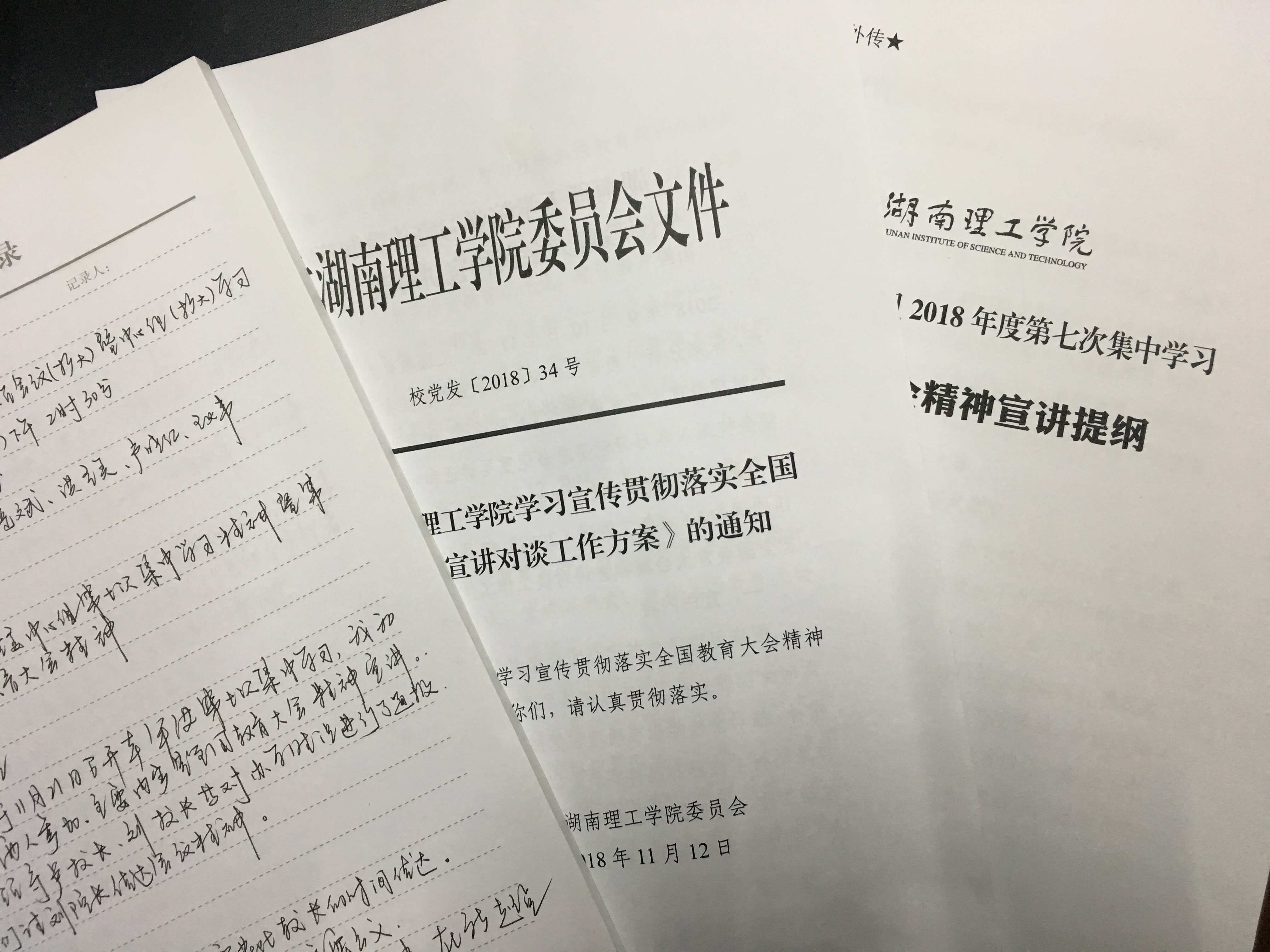学校党委于11月21日召开2018年度理论学习中心组(扩大)第七次集中学习,教科院院长刘理、党总支书记刘淳松两人参加。此前,教科院党总支于9月28日召开扩大会议,组织全体党员第一次集中学习全国教育大会精神。(教科院王炜 供稿)