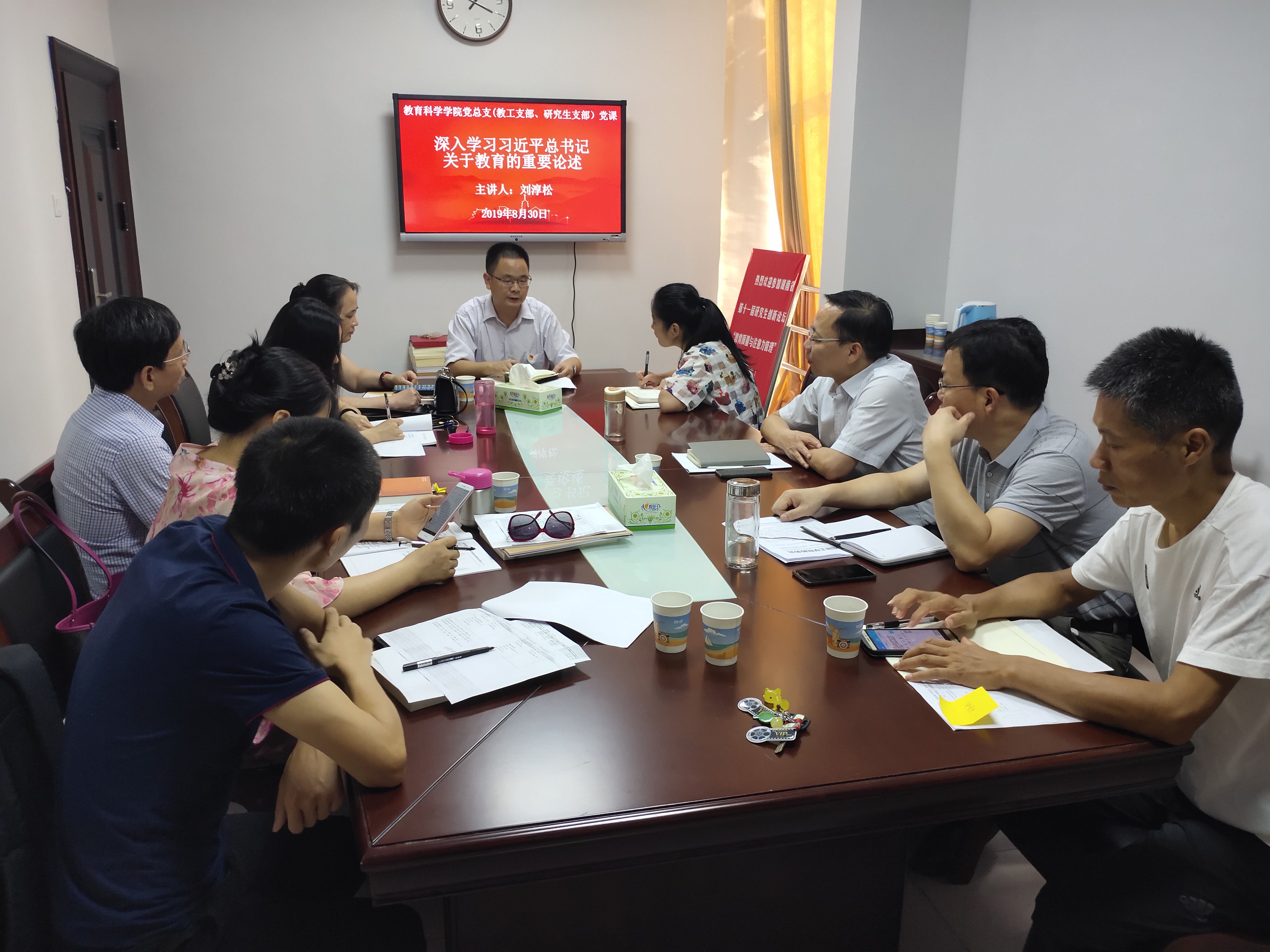 8月30日下午,教育科学学院党总支在综合楼314会议室举行专题党课,组织学习习近平总书记关于教育的重要论述。专题党课由学院党总支书记刘淳松教授主讲,学院全体共产党员参加学习,党外干部、教工应邀参加学习。