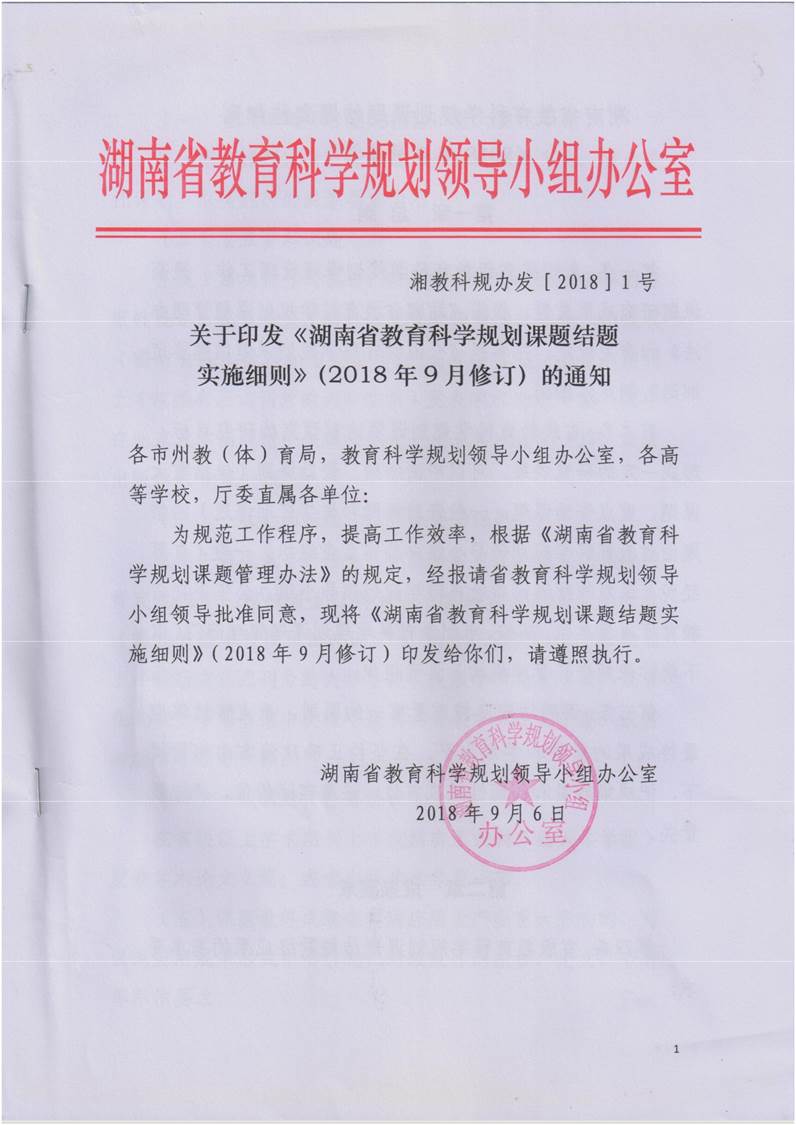 关于印发《湖南省教育科学规划课题结题实施细则》的通知