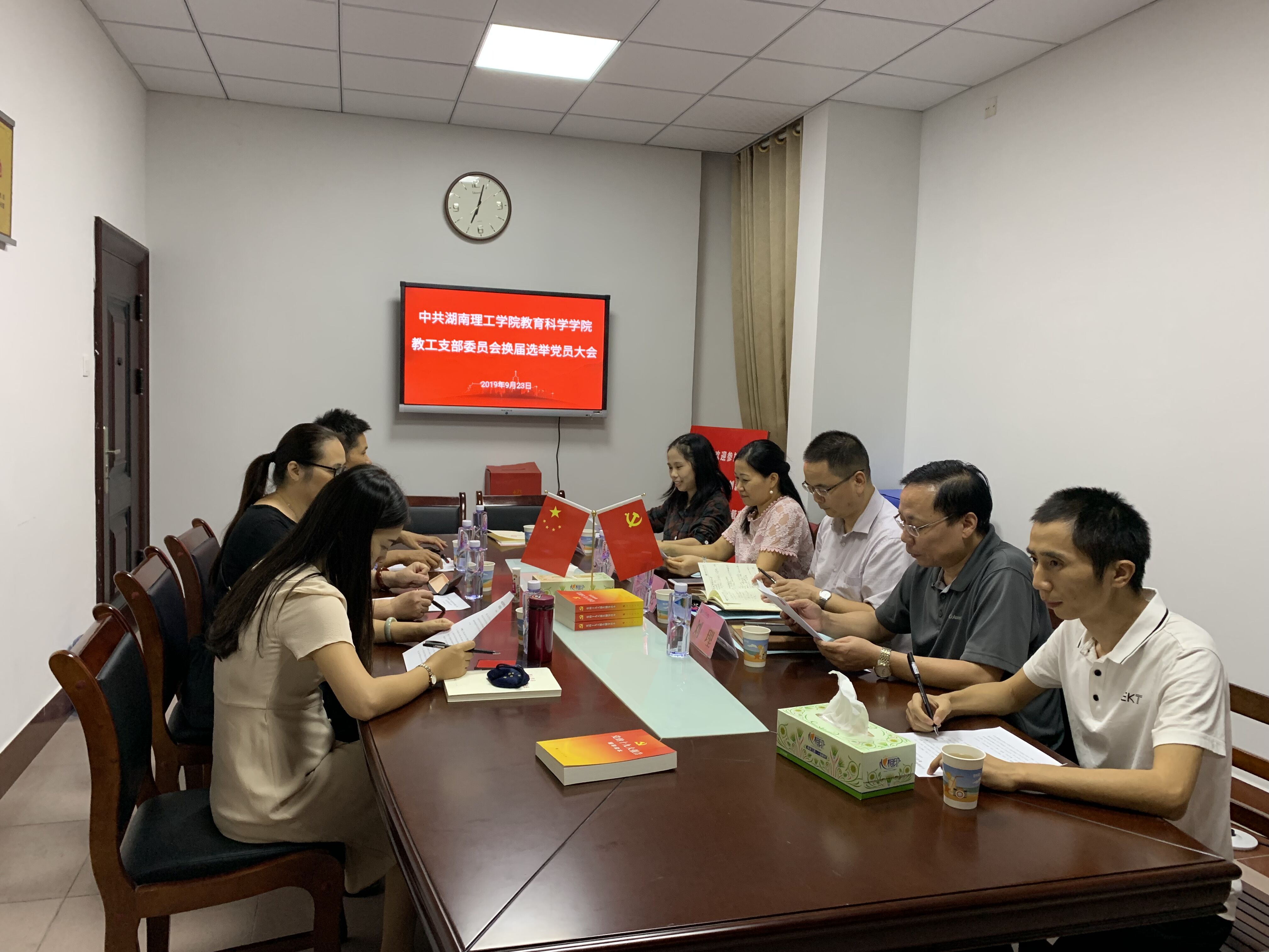 9月23日晚,教育科学学院教工党支部在综合楼314会议室召开党员大会进行换届选举。学院党总支书记刘淳松,院长、党总支副书记刘理及全体教工党员参会。大会由学院教工党支部副书记、专职组织员刘青姗主持。