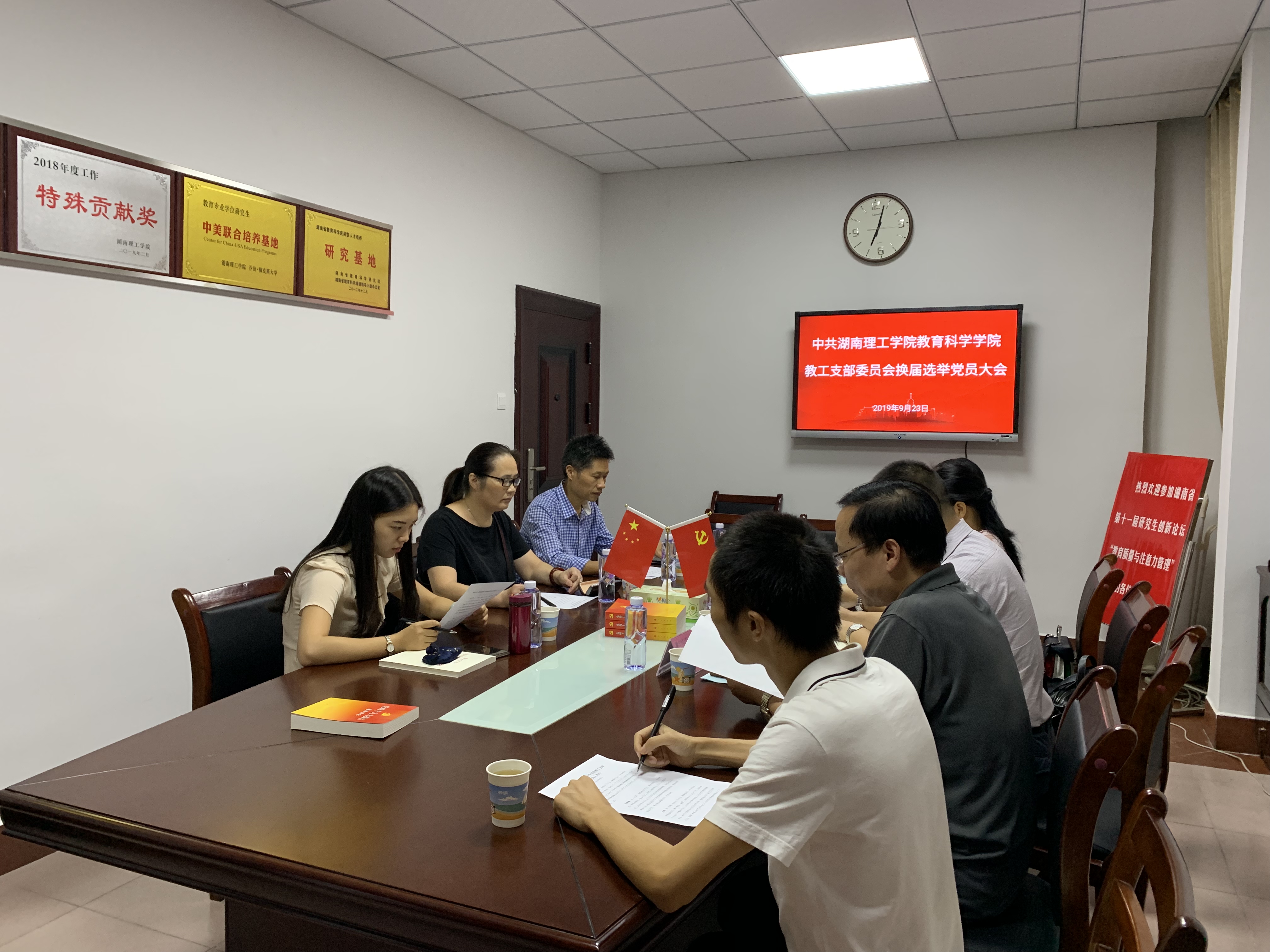 大会在庄严的国际歌声中闭幕。会后教工支部委员会召开全体会议,选举刘理为支部书记、刘青姗为支部副书记,明确了委员分工。(供稿:王炜)