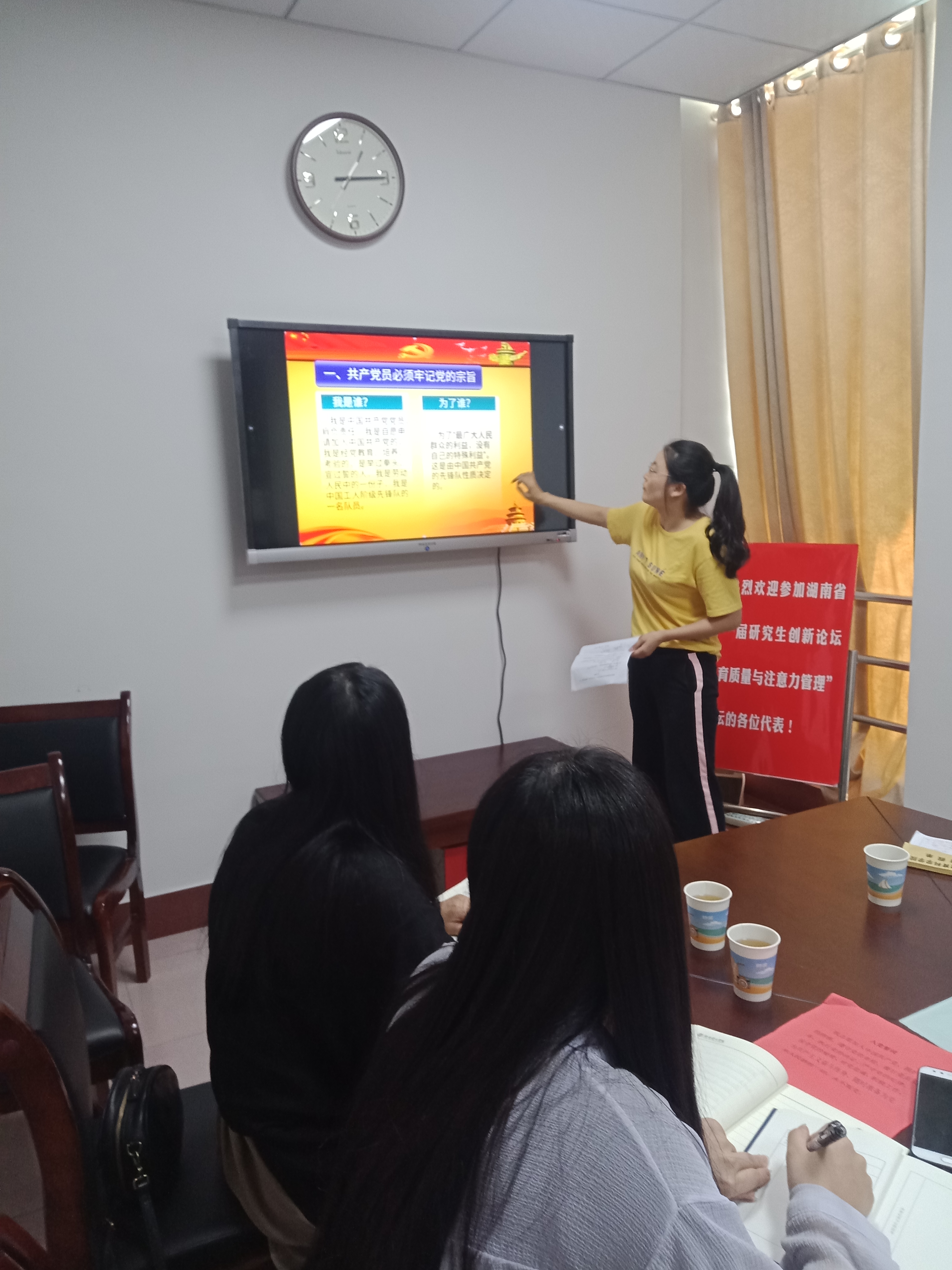 为扎实开展“不忘初心、牢记使命”主题教育,9月27日下午,教育科学学院研究生党支部在综合楼314会议室举行主题党日活动,围绕“牢记党的宗旨,增强服务意识”这一主题进行讨论交流。研究生党支部书记王炜及全体研究生党员参加。