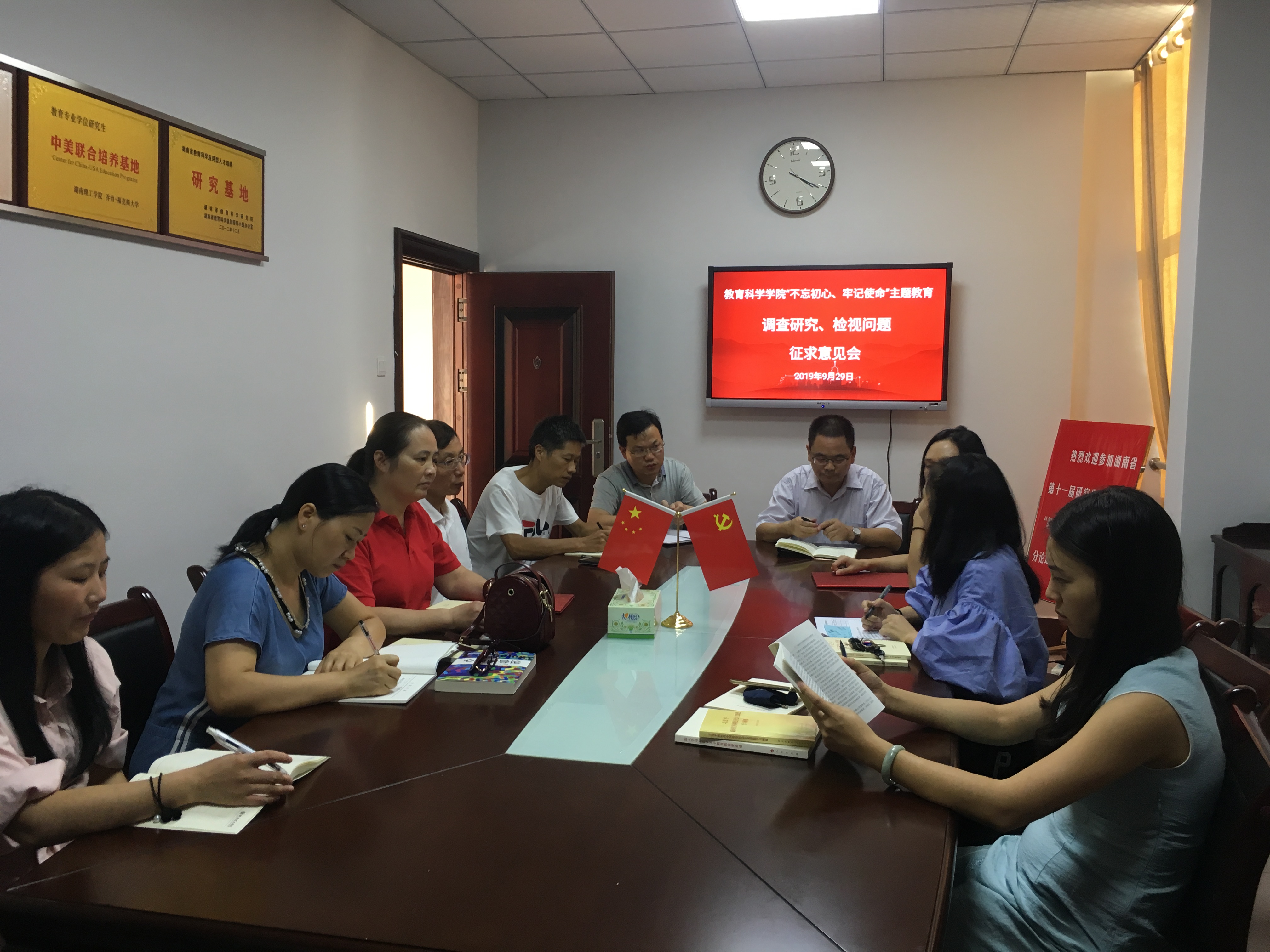 9月29日下午,教育科学学院党总支在综合楼314会议室召开“不忘初心、牢记使命”主题教育(调查研究、检视问题)征求意见会。会议由学院党总支专职组织员、教师党支部副书记刘青姗主持,学院全体教师参加。