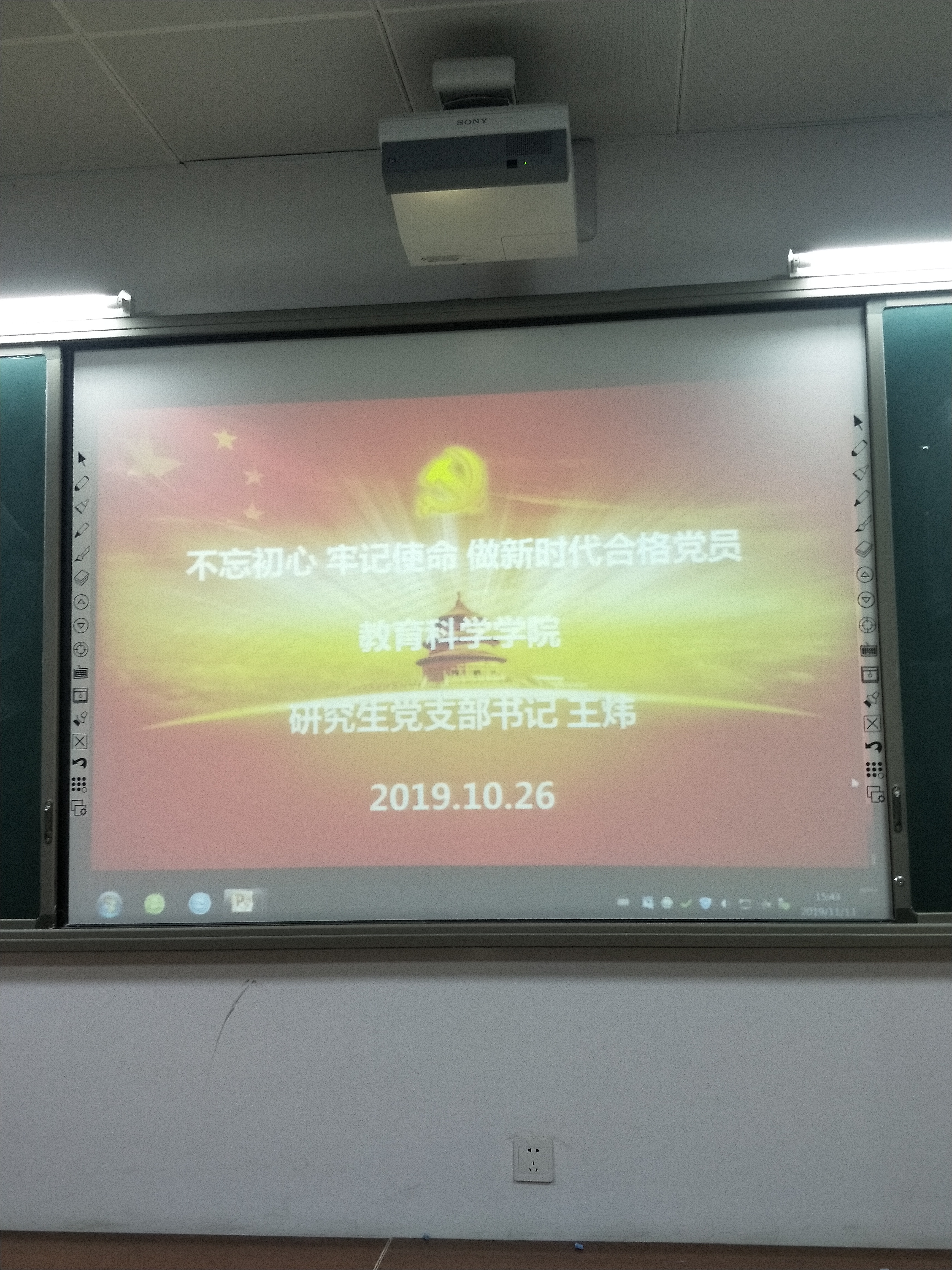 10月26日上午,教育科学学院“不忘初心、牢记使命”主题教育党课在12教学楼12405教室举行。党课由学院研究生党支部书记王炜同志主讲,学院全体研究生党员参加。