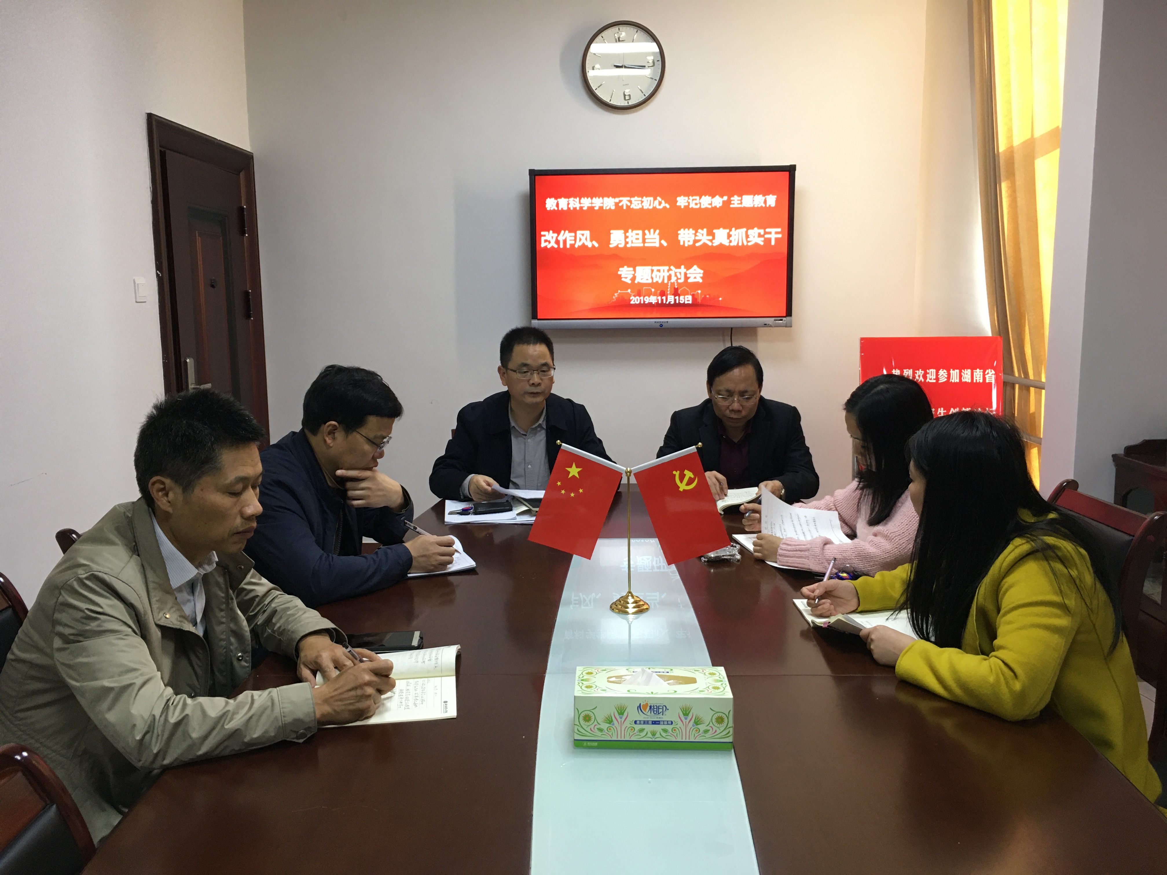 11月15日下午,教育科学学院党总支“不忘初心、牢记使命”主题教育专题研讨会在综合楼314会议室进行。学院党总支理论学习中心组成员参加研讨。