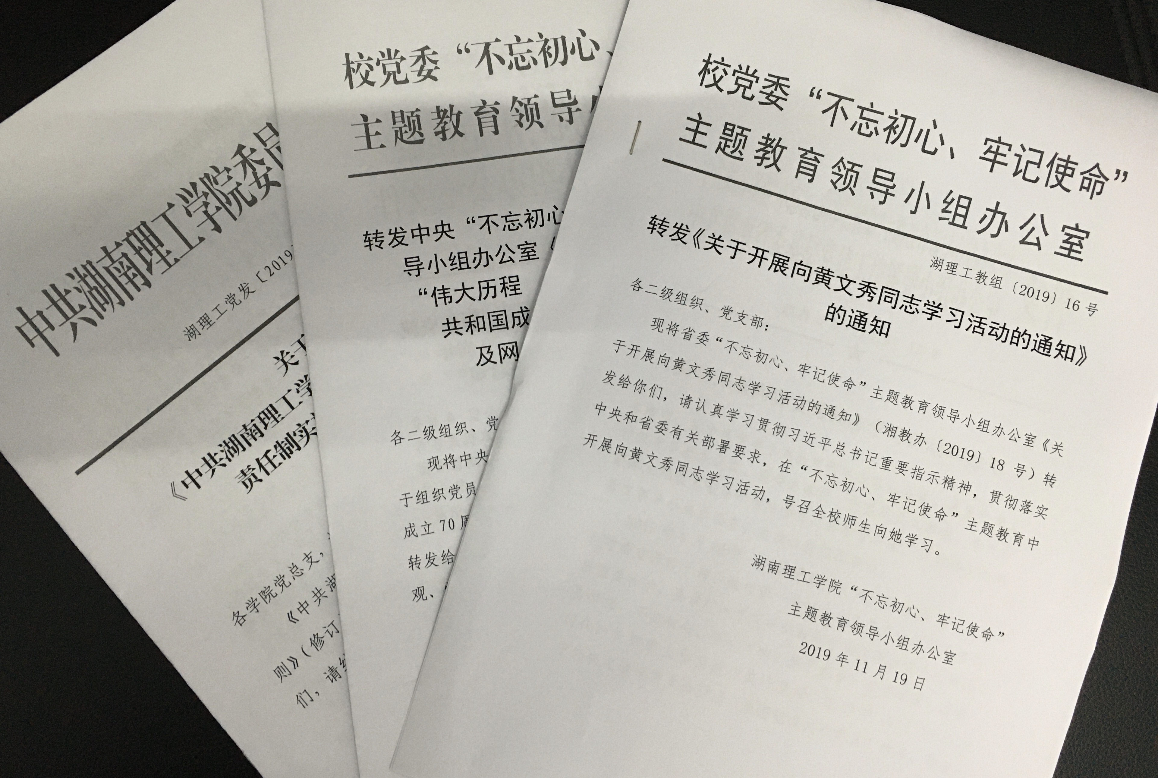 会上,党总支负责人传达学习11月21日召开的学校党建与思想政工作例会精神,进一步落实学院主题教育各项工作,落实李明书记、邱绍雄副书记、徐小立副校长等校领导及党务部门领导的讲话精神。会议传达了校党委2019年9月3日印发的《关于印发<中共湖南理工学院委员会意识形态工作责任制实施细则>(修订)的通知》(湖理工党发[2019]20号)精神;组织学习学校主题教育办发布的《转发中央“不忘初心、牢记使命”主题教育领导小组办公室<关于组织党员干部参观“伟大历程 辉煌成就——庆祝中华人民共和国成立70周年大型成就展”及网上展馆的通知>的通知》(湖理工教组[2019]17号)精神。