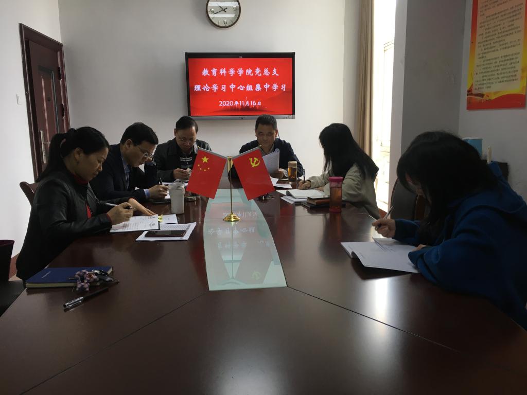 11月16日上午,教育科学学院党总支理论学习中心组举行集中学习,中心组全体成员参加。