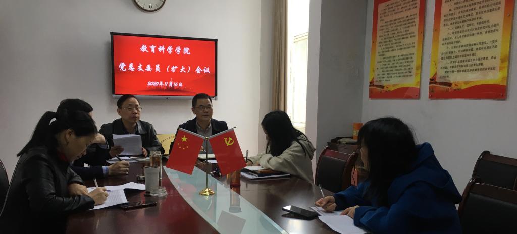 11月16日上午,教育科学学院党总支委员会召开扩大会议,学习学校党建工作推进会议精神,部署学院党建工作。学院党总支全体成员、党外领导干部、党支部书记、专职组织员参加。