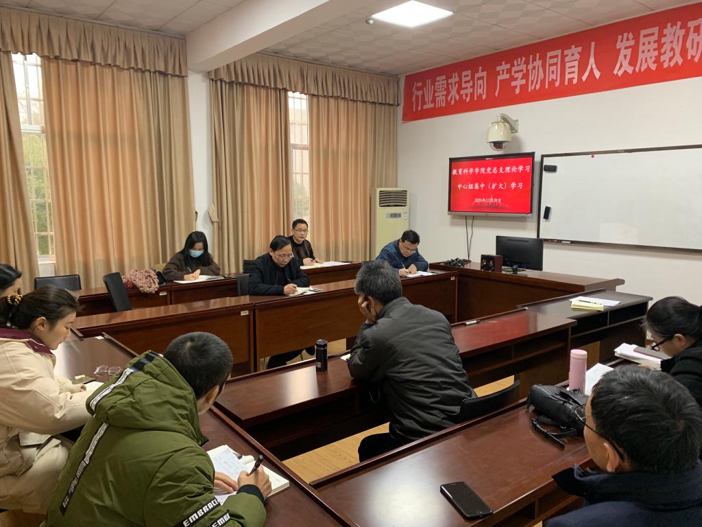 12月29日下午,教育科学学院党总支理论学习中心组在1教学楼1303A教室进行集中(扩大)学习。学院中心组全体成员、全体共产党员、党外教师参加学习。