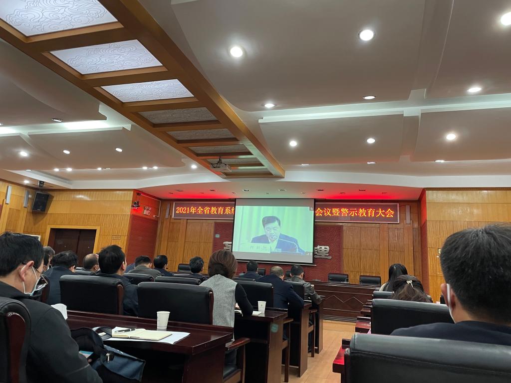 4月8日上午9时,2021年全省教育系统全面从严治党工作视频会议暨警示教育大会召开。学校视频会议会场设办公楼214会议室。