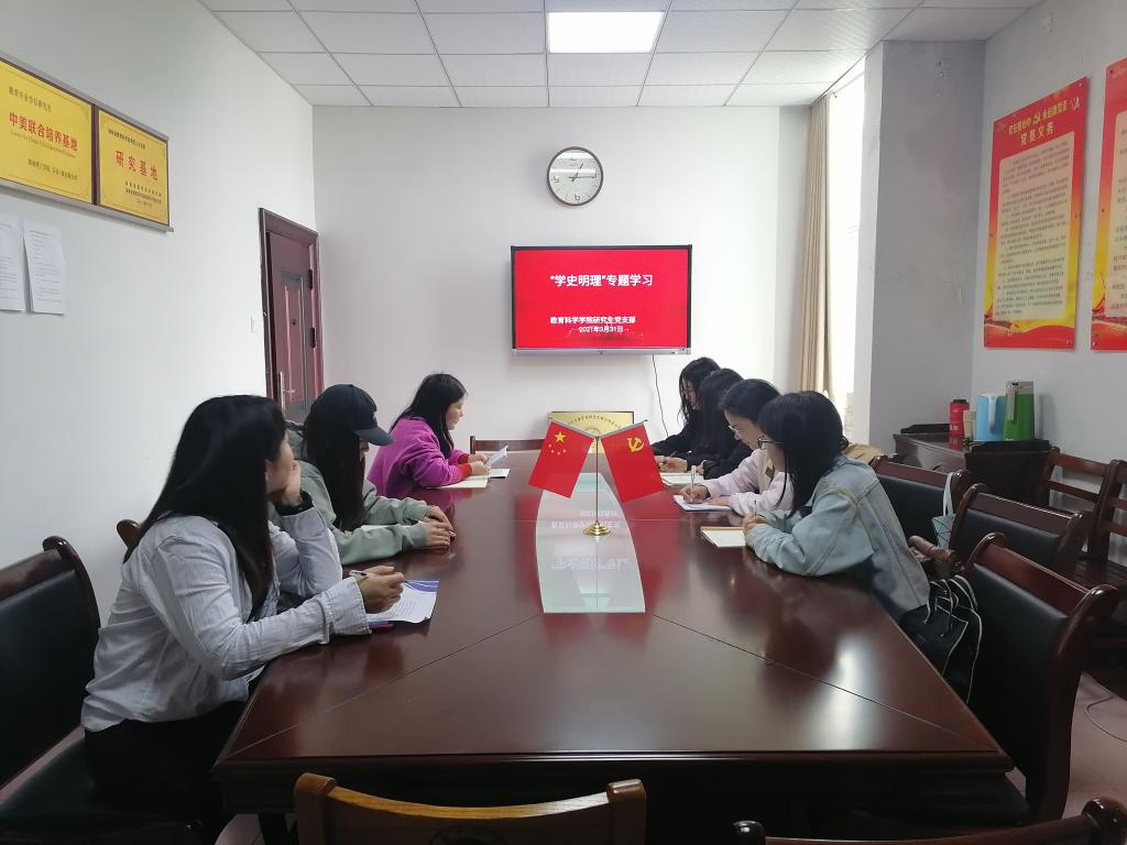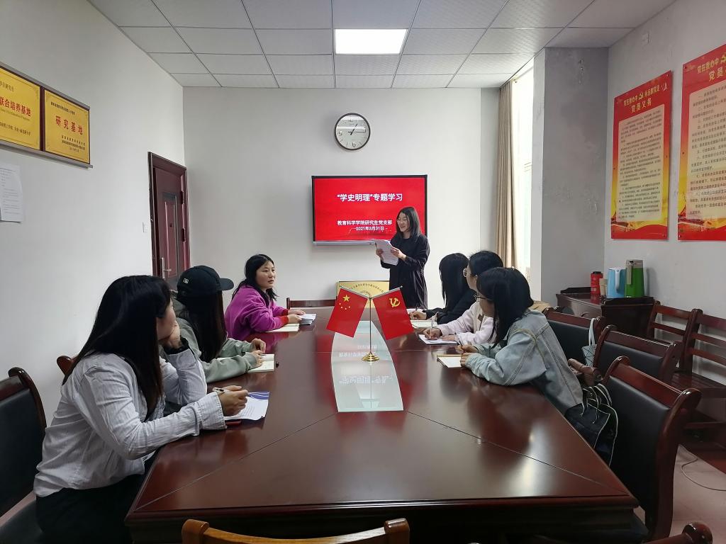 3月31日下午,教育科学学院研究生党支部在综合楼314会议室开展以“学史明理”为主题的党史学习教育。支部书记王炜和全体研究生党员参加学习。