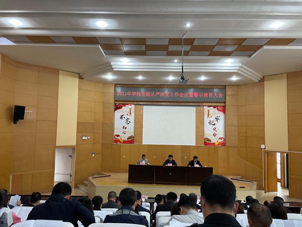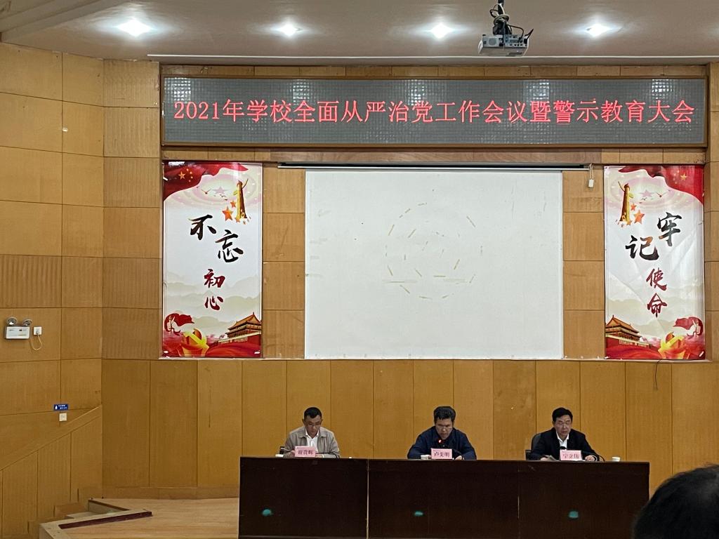 4月21日下午,学校召开2021年全面从严治党工作会议暨警示教育大会。校党委书记卢先明出席会议并讲话,校党委委员、纪委书记、监察专员谢贵辉作纪检监察工作报告,并对全体与会人员作警示教育。校党委副书记、校长宁立伟主持会议。