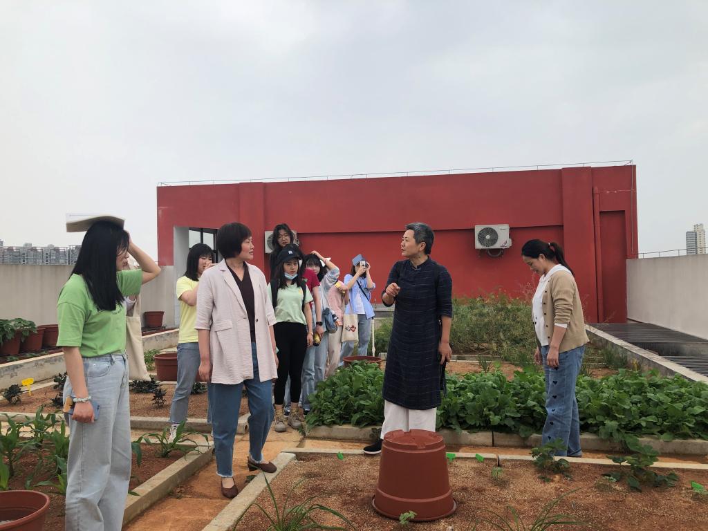 教学研讨的第一个环节是李坚坚老师带领大家参观劳动实践基地。利用教学楼屋顶的一隅,打造生机盎然的小小菜园。从育苗、培土、种植、到浇水、收获,师生们共同培育蔬菜和鲜花,在田间劳动中快乐学习。随后,大家一齐来到394班,班主任汤黎指导孩子们擦拭窗户,在班级管理中渗透劳动教育。教室里的宣传栏、全家福、书香小屋、小水房、小金鱼、画作小天地等常规设施与个性化布置,处处体现着干净、整洁、温馨,同学们笑容可掬。