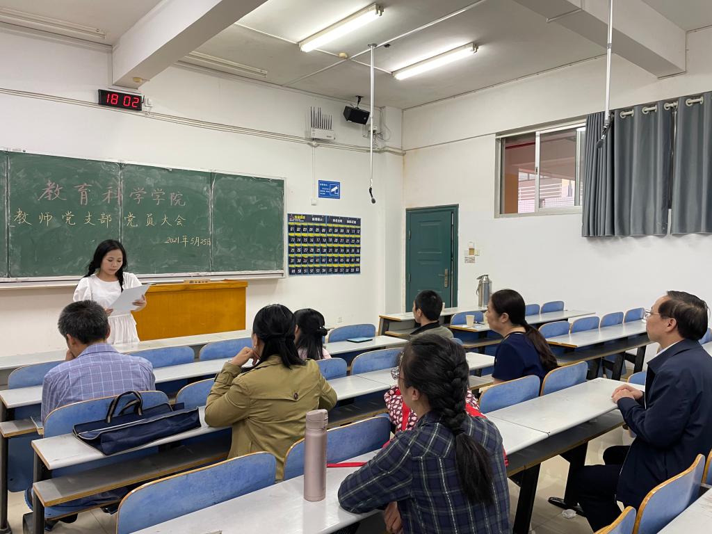 为庆祝中国共产党成立100周年,根据《湖南省贯彻<中国共产党党内功勋荣誉表彰条例>》实施办法》和学校党委有关工作部署,5月25日下午,教育科学学院教师党支部召开大会,评选推荐优秀共产党员。会议由党支部副书记刘青姗主持。