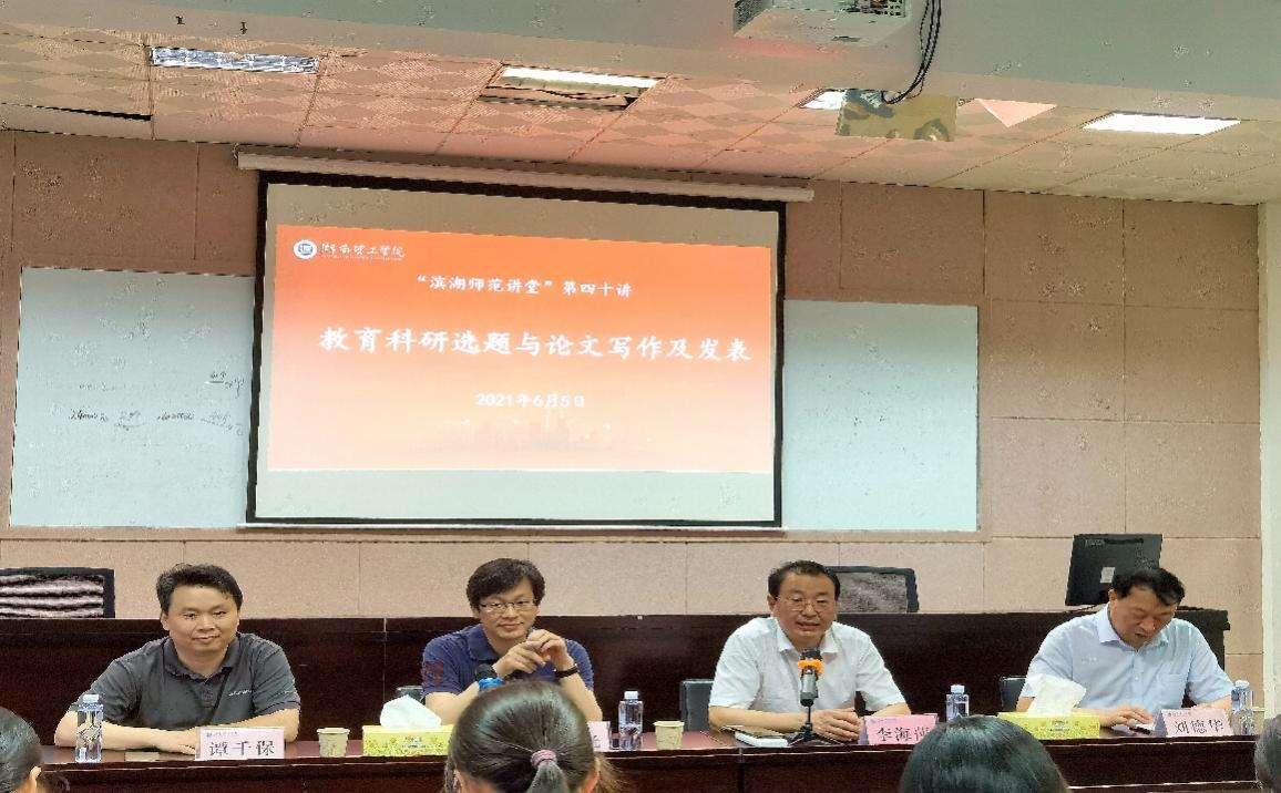 6月5日晚,由湖南理工学院教育科学学院举办的“滨湖师范讲堂”第四十讲在1302学术活动室举行,莅临本次讲座的嘉宾有湖南科大教育学院院长、博士生导师李海萍教授、湖南师范大学博士生导师刘德华教授、湖南第一师范学院教育学院院长胡春光教授以及湖南科大谭千保教授。本次讲堂由教科院院长刘理教授主持,教科院党总支书记刘淳松教授、教师教育教研室主任黄威博士和部分教师及全体教育管理和小学教育专业研究生参加。