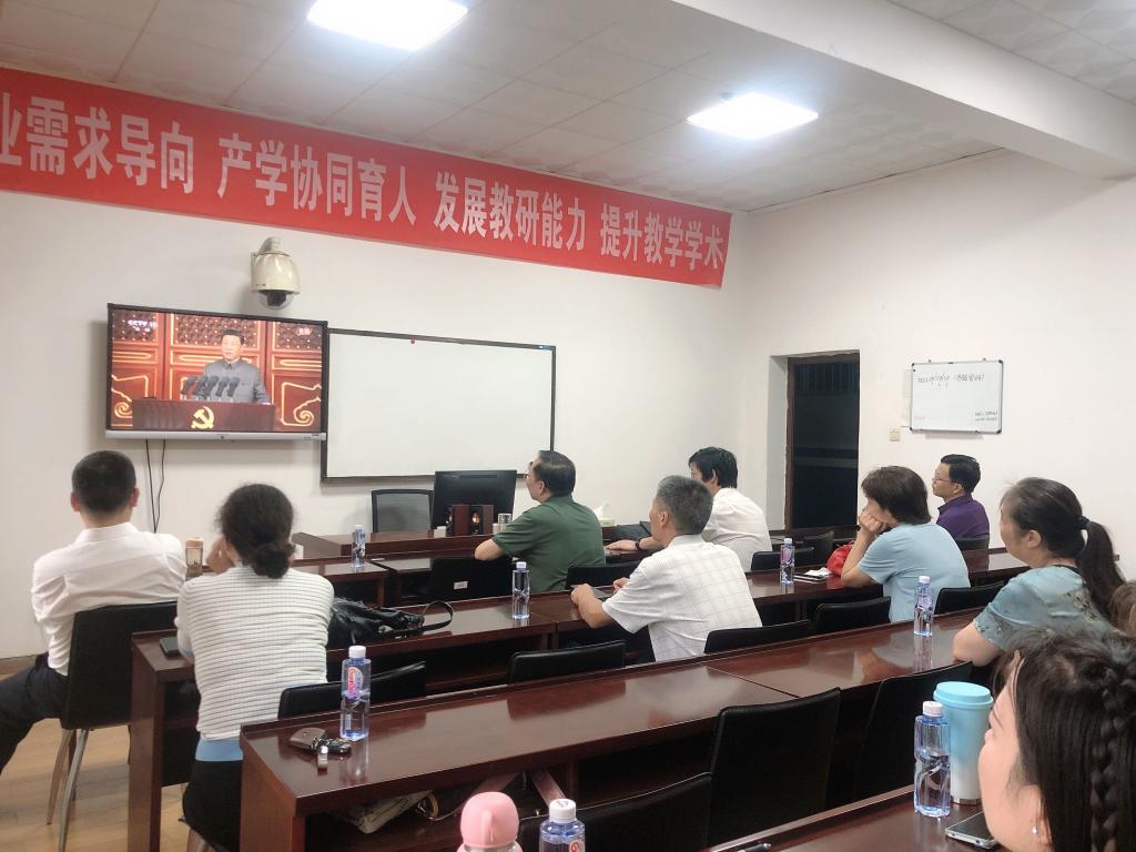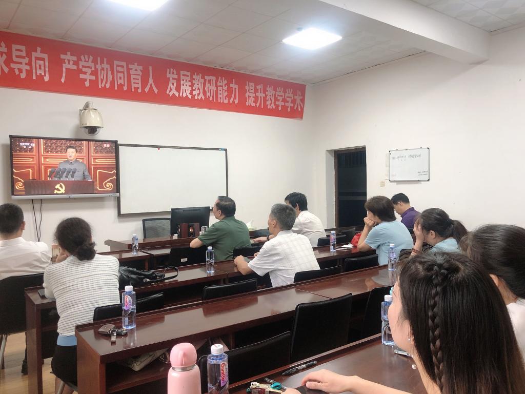 7月1日上午8时,庆祝中国共产党成立100周年大会在北京天安门广场隆重举行。中共中央总书记、国家主席、中央军委主席习近平发表重要讲话。教育科学学院党总支组织全体教师及学生代表在1教学楼1303A教室集中收看庆祝中国共产党成立100周年大会直播盛况。