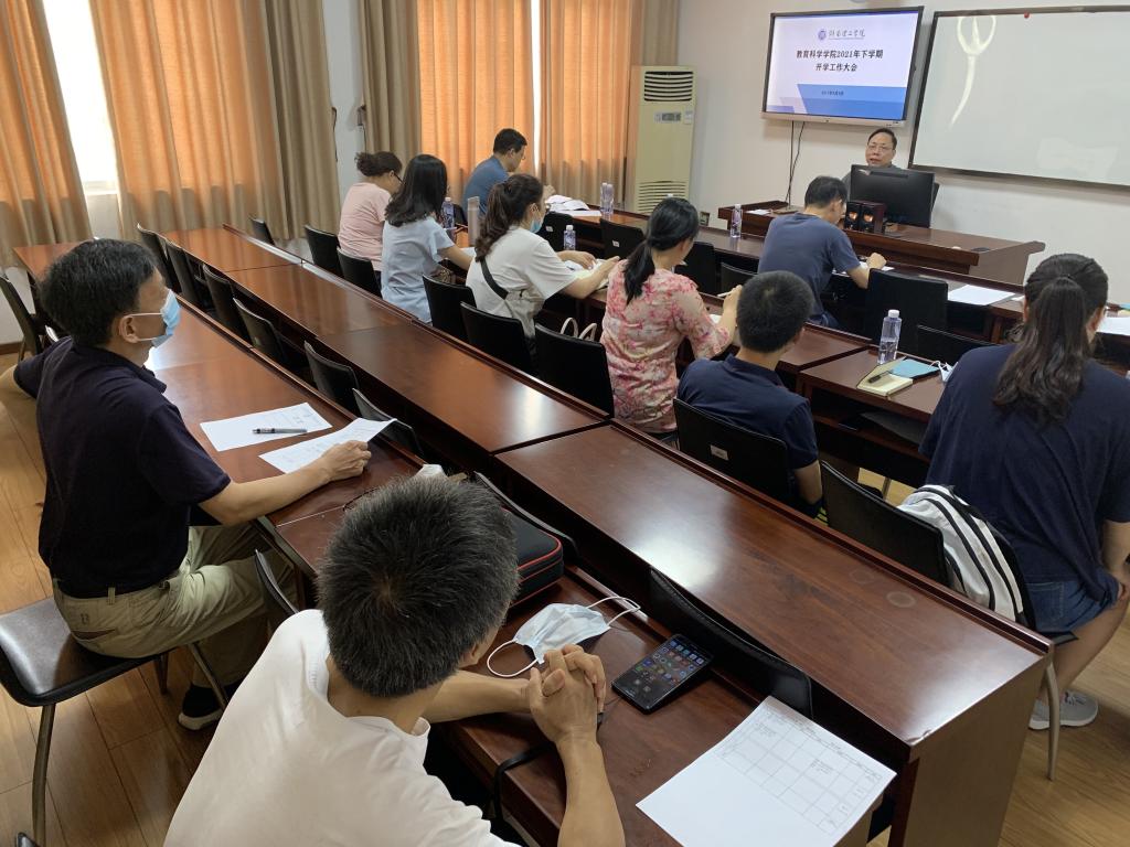 93日下午,教育科学学院在1教学楼1303A教室召开2021年度下学期开学工作会议。全院教师参会。
