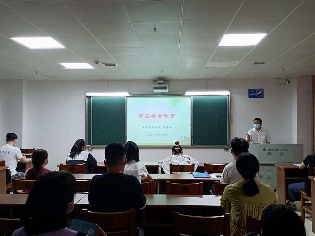 为落实学校疫情防控措施,增强学生的安全责任意识,9月11日下午,教育科学学院在12教学楼12405教室举行责任安全教育会议。学院党总支书记刘淳松、代理辅导员罗溢枫及学院全体2021级研究生新生参加会议。