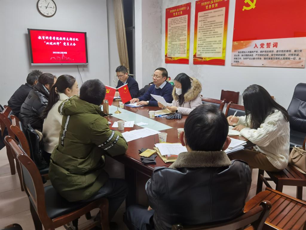 根据学校党委《关于印发<中共湖南理工学院委员会党支部书记“双述双评”工作实施办法(试行)>的通知》(湖理工党发〔2021〕30 号)精神,12月28日晚上,教育科学学院教师党支部书记“双述双评”会在综合楼314会议室进行。学院党总支委员会委员及全体教师党员参加,会议由学院党总支书记刘淳松主持。