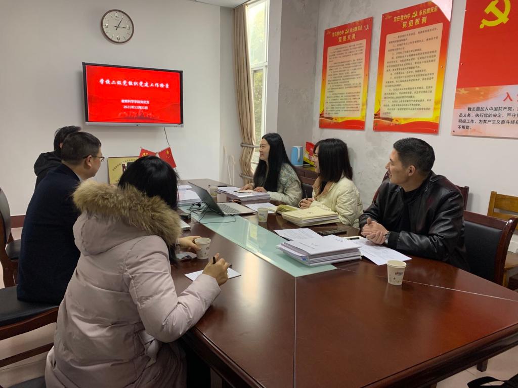 检查组认真查阅学院党建工作会议记录、计划总结、文件报告等材料,并与学院负责人交流,进一步了解党建工作开展情况。