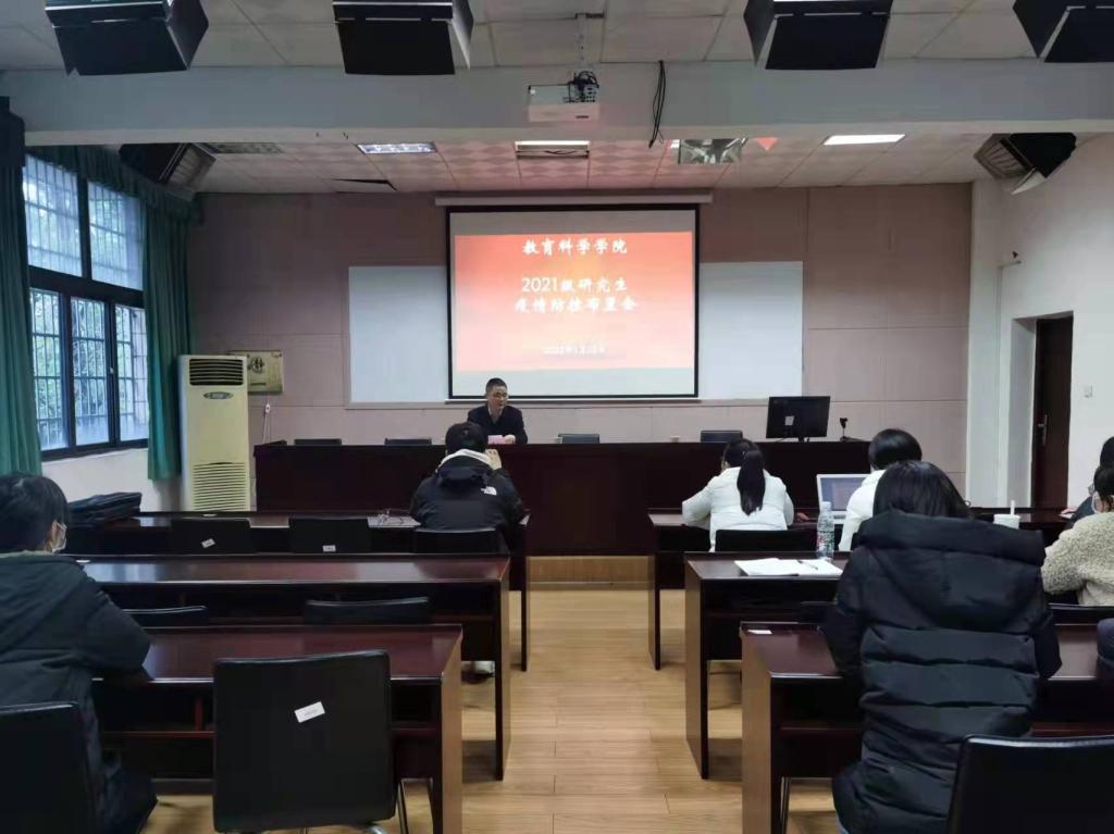3月22日下午,教育科学学院在1教学楼1302教室召开2021级研究生疫情防控专题会,部署疫情防控相关工作。院长刘理、党总支书记刘淳松、辅导员王炜及2021级教育管理、小学教育专业全体学生参会。