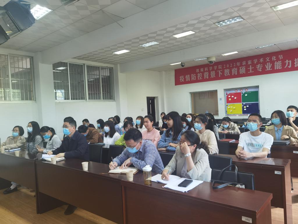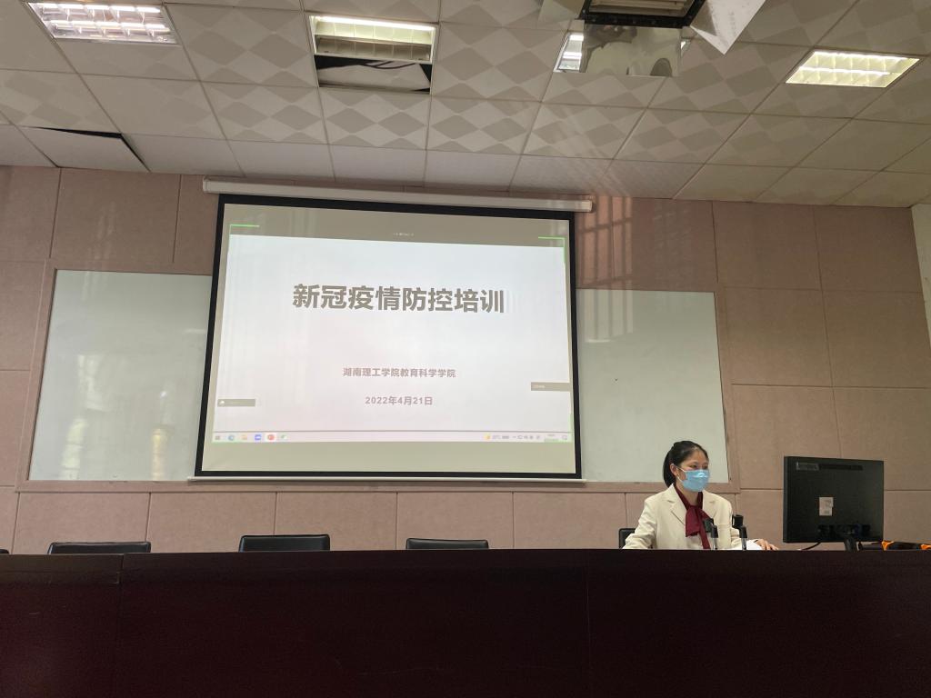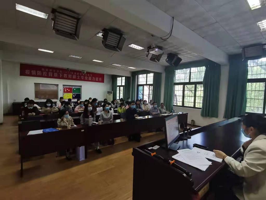 4月21日下午,教育科学学院在1教学楼1302教室举行疫情防控专题培训会。会议采用线上与线下相结合的方式,院长刘理、党总支书记刘淳松、副院长彭阳红、校党委原书记李明及学院全体师生参加培训。