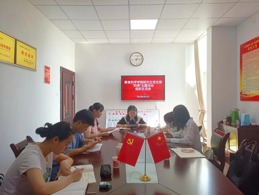 6月21日下午,教育科学学院研究生党支部在综合楼314会议室召开“四亮”主题活动专题组织生活会。学院研究生党支部书记王炜及全体研究生党员参会。会议由支部组织委员谷俊科主持。