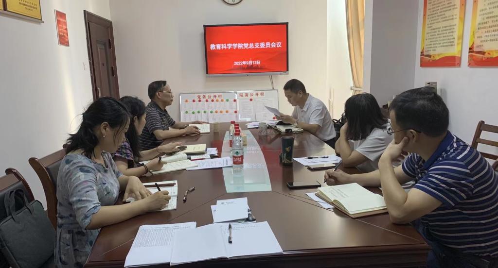 9月13日下午,教育科学学院党总支委员会议在综合楼314会议室召开。总支全体成员参会,学院党外领导干部、分工会主席、办公室主任,教师党支部副书记应邀列席。