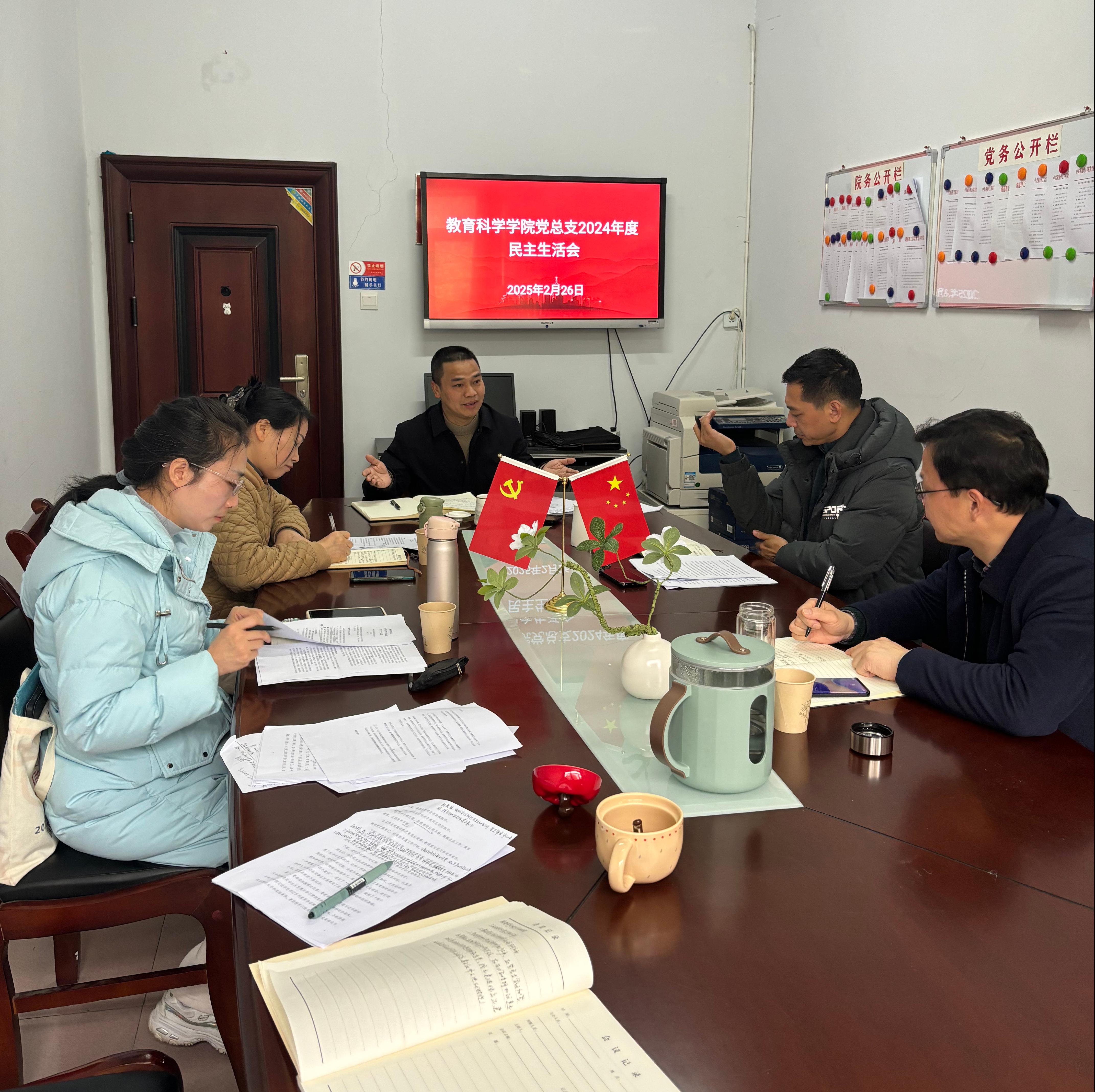 2月26日上午,教育科学学院党总支在综合楼312会议室召开2024年度民主生活会,校党委委员、组织部长胡文静与会指导,院党总支书记钟坚主持,全体党总支成员和党总支组织员参加,主持学院行政工作的副院长彭阳红列席会议。