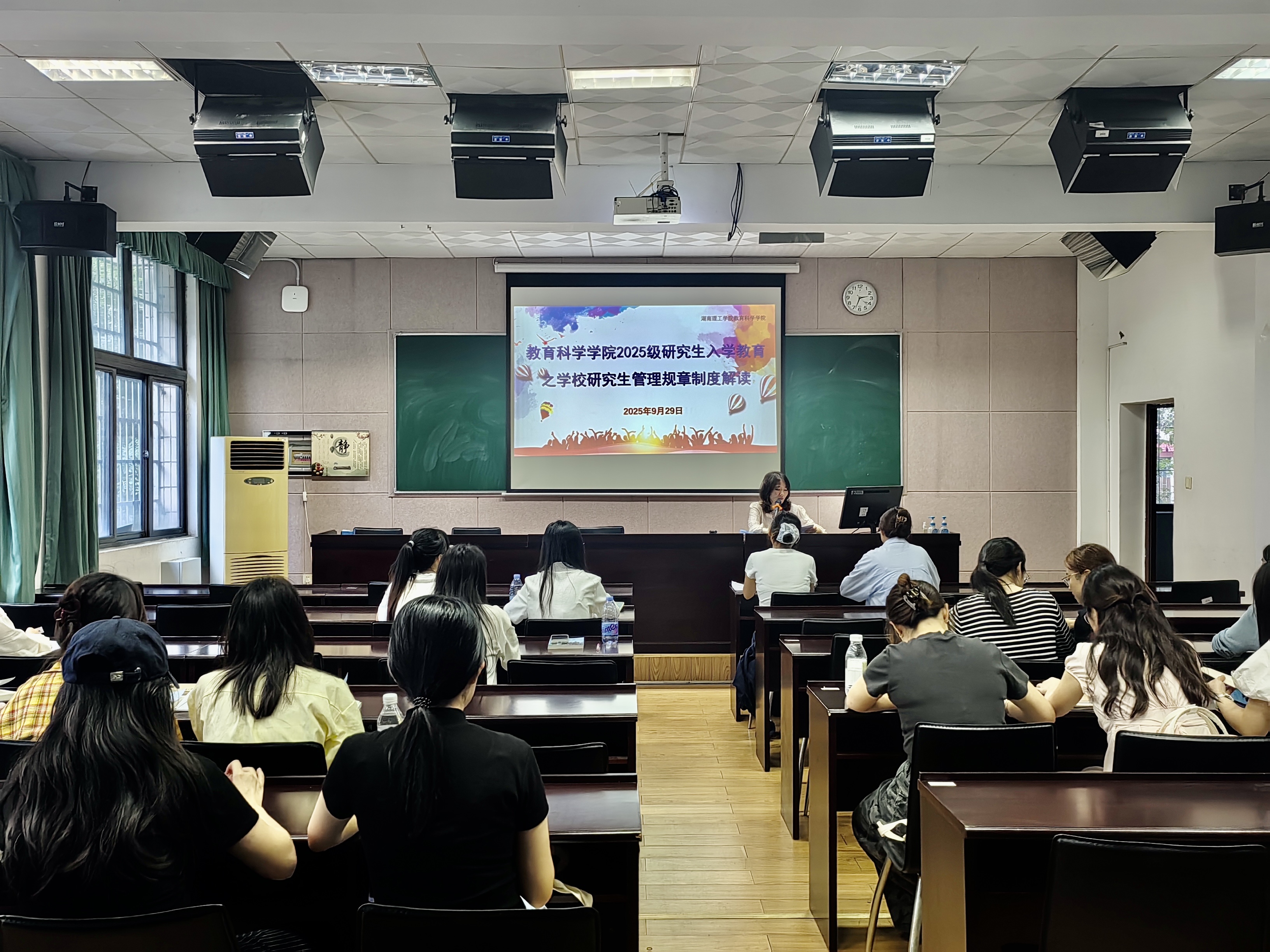 9月29日,太阳网集团tcy8722在1号教学楼1302教室开展2025级硕士研究生新生入学教育,研究生党支部书记、辅导员王炜给全体新生解读学校研究生管理规章制度。