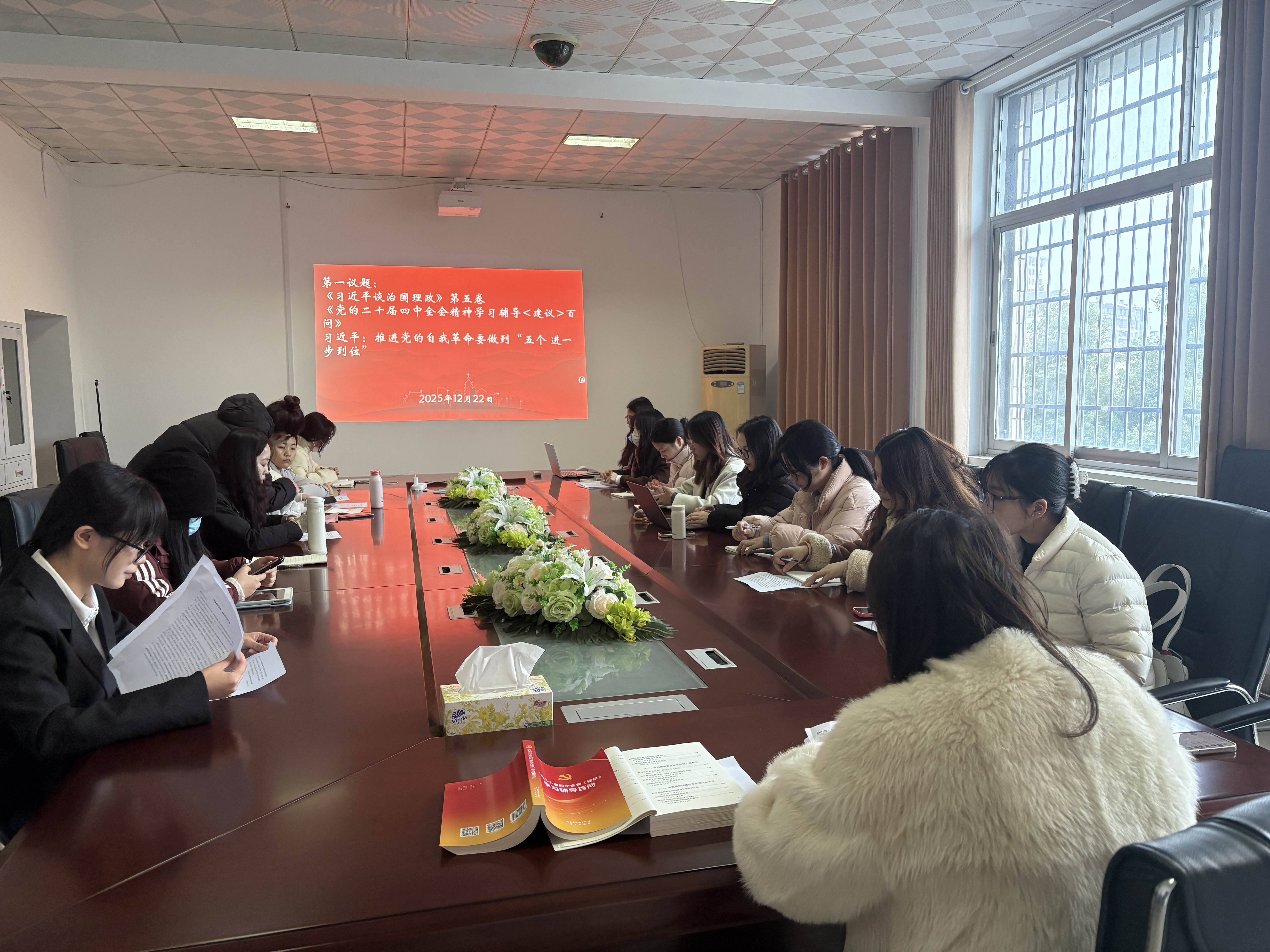 2025年12月22日,学院研究生党支部在1305会议室组织全体党员主要围绕党的二十届四中全会精神开展专题理论学习。