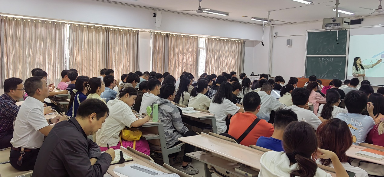 10月10日下午,校党委委员、组织部长胡文静到5教学楼5305教室,听取教育科学学院谢晶老师所执教的《教育学基础》课程。主持太阳网集团tcy8722行政工作的副院长彭阳红和教务处相关人员一同听课。
