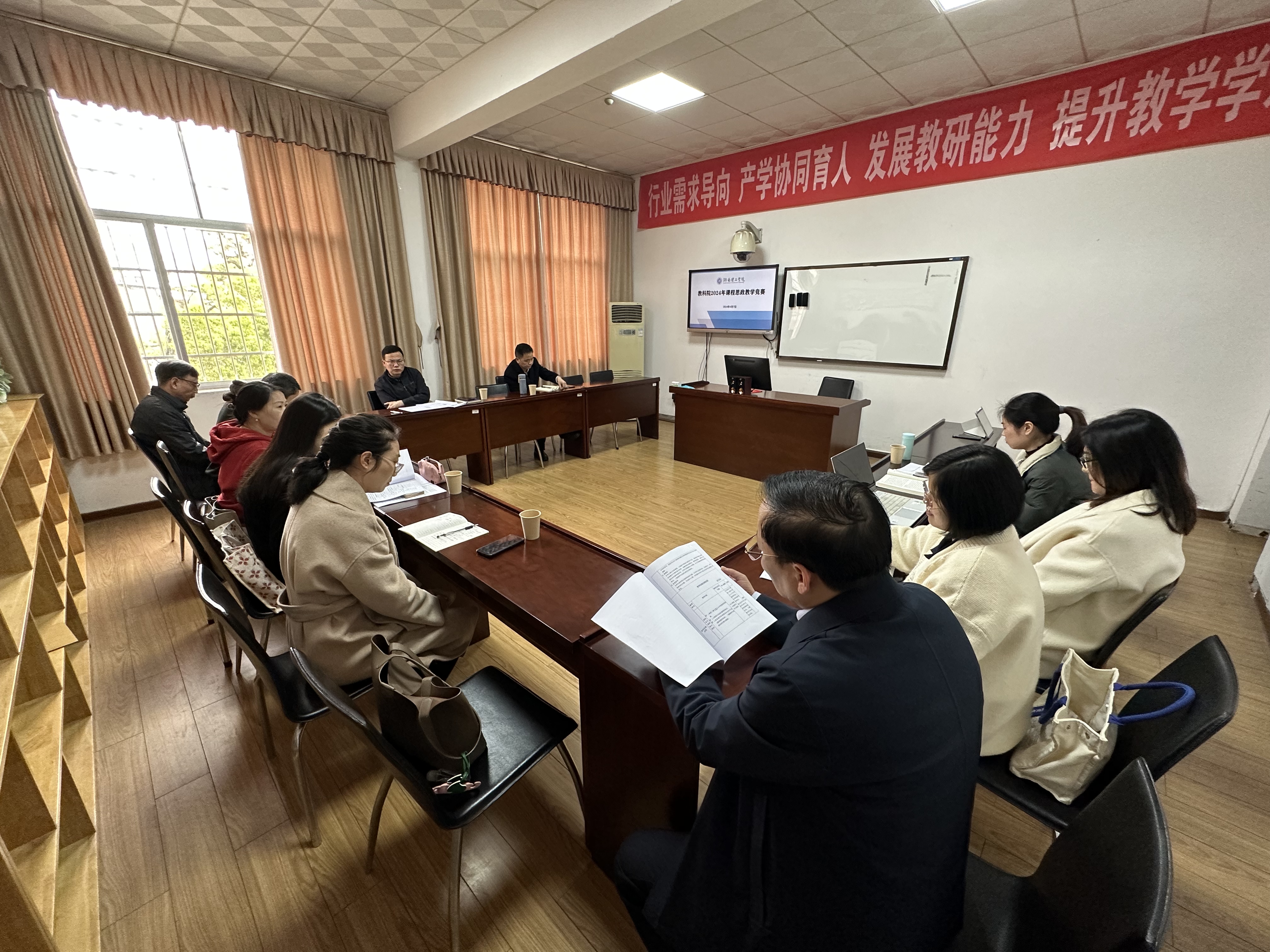 为更好地将思想政治教育融入教学过程,提升太阳网集团tcy8722课程思政教学质量,教育科学学院于2024年4月7日在1号教学楼1303A举办了课程思政教学竞赛学院初赛。廖霞、莫尉两位老师参加比赛,教育科学学院全体教师共同观摩比赛。
