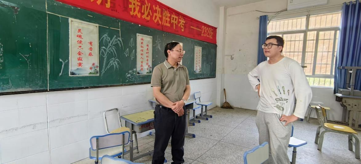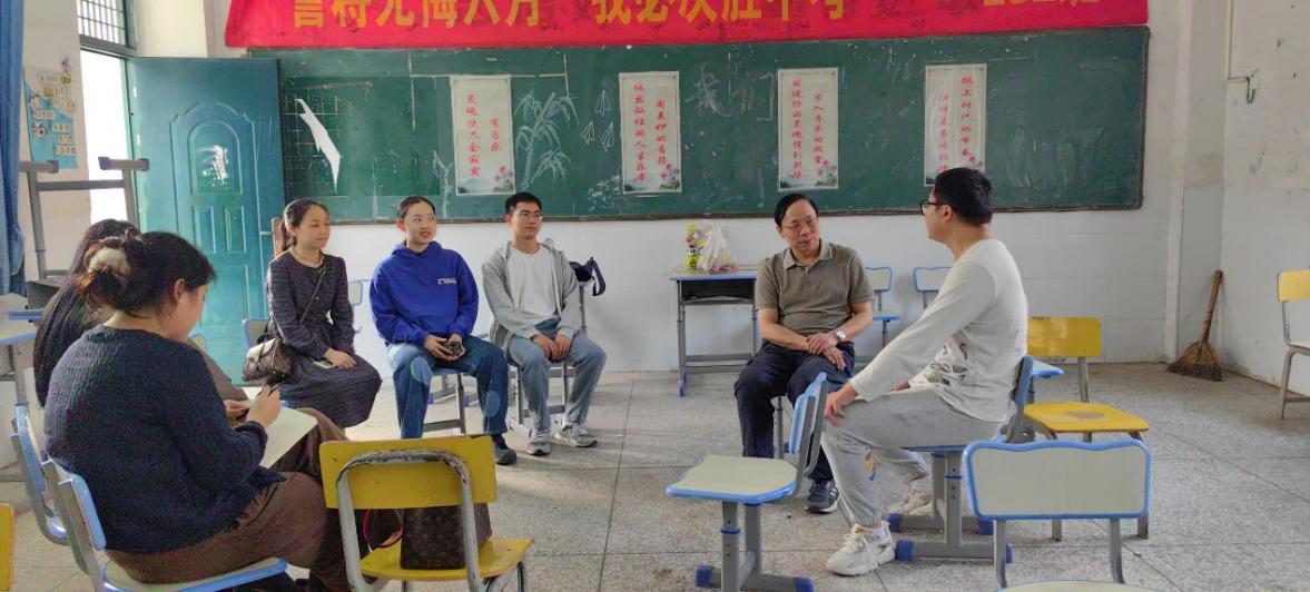 一到三市中学,刘理教授带队首先看望慰问了正在三市中学支教的教科院23级研究生王费城,为他带去了学院师生的支持与鼓励。刘理教授与王费城同学亲切交谈,关心询问他的生活和工作情况,悉心指导疑难问题,并勉励他要珍惜支教机会,厚植教育情怀,虚心请教,积极创新,不断磨砺提升教育实践能力。