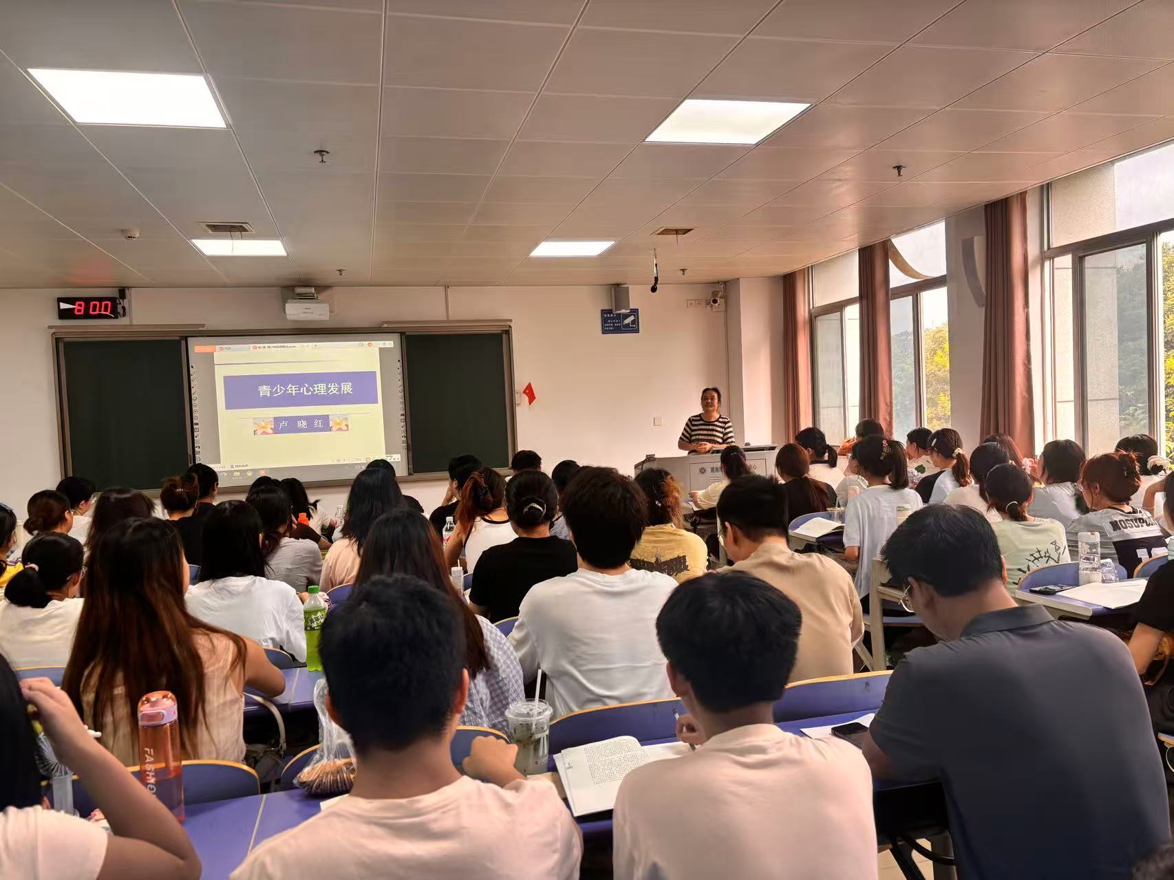 2025年9月1日,新学期开学第一天,教科院主要负责人钟坚、彭阳红带领学院教学督导及部分无课教师,走进12210教室,听取卢晓红老师主讲的“青少年发展心理学”开学第一课。