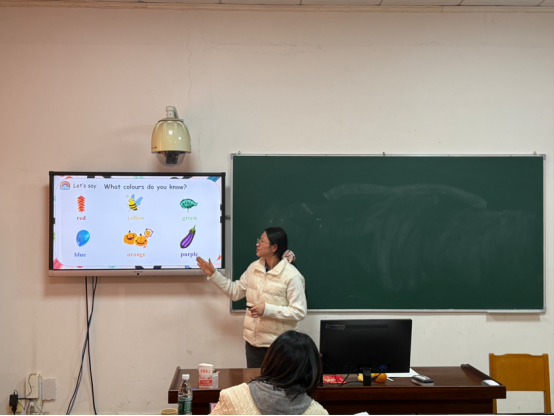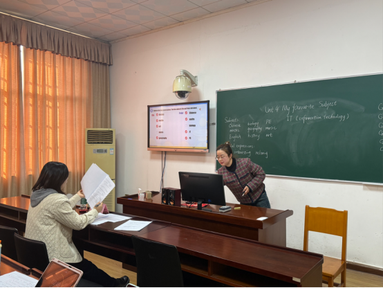 在语文教学展示中,袁洋敏通过生动的讲解与板书将课文中的色彩意象呈现得淋漓尽致;王小红则借助精美的PPT与亲切的教态,充分展现了语文课堂的趣味性与感染力。在英语教学环节,施全通过情境化教学设计营造出真实的语言交流氛围;张书玉以游戏互动激活课堂;伏明珠紧密围绕核心素养展开教学,情境创设生动,互动形式丰富;胡仕贵语言流畅、指令清晰,注重思维引导与板书设计;任经纬则恰当运用多媒体辅助教学,强调合作探究,体现了以学生为中心的教学理念。
