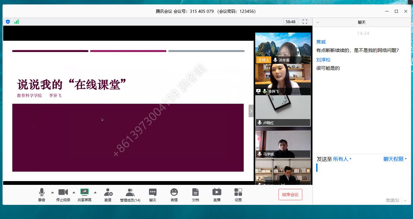 随后,教科院其他教师都分享了近期开展线上教学的体会与经验,并重点围绕“教师教育课程如何将应对教师资格证考试和师范生专业素养提升有机结合”“如何提高学生的线上课堂参与度”等问题展开了热烈的讨论。大家畅所欲言、共同商讨解决问题的对策。