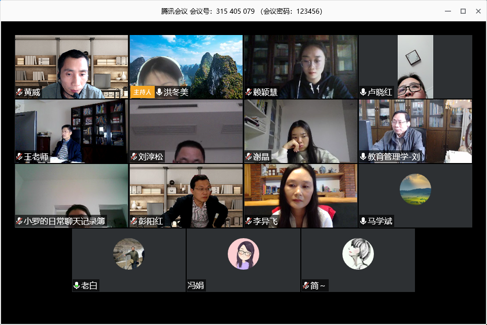 4月21日下午,教育科学学院教育学心理学教研室和学科教学与师范技能教研室联合开展线上教研活动。此次活动由教研室主任洪冬美副教授主持,学院全体专任教师参加。校级督导白纯洁老师、学校教师发展中心张艳雯主任、王莉英副主任和冯娟老师一同出席本次教研活动。