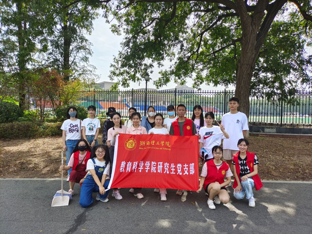 为落实学校劳动教育精神,迎接湖南省第十二届大学生运动会的到来,9月9日上午,教育科学学院研究生党支部全体党员及入党积极分子在支部书记王炜带领下,一起展开校园卫生大扫除劳动教育主题党日活动。