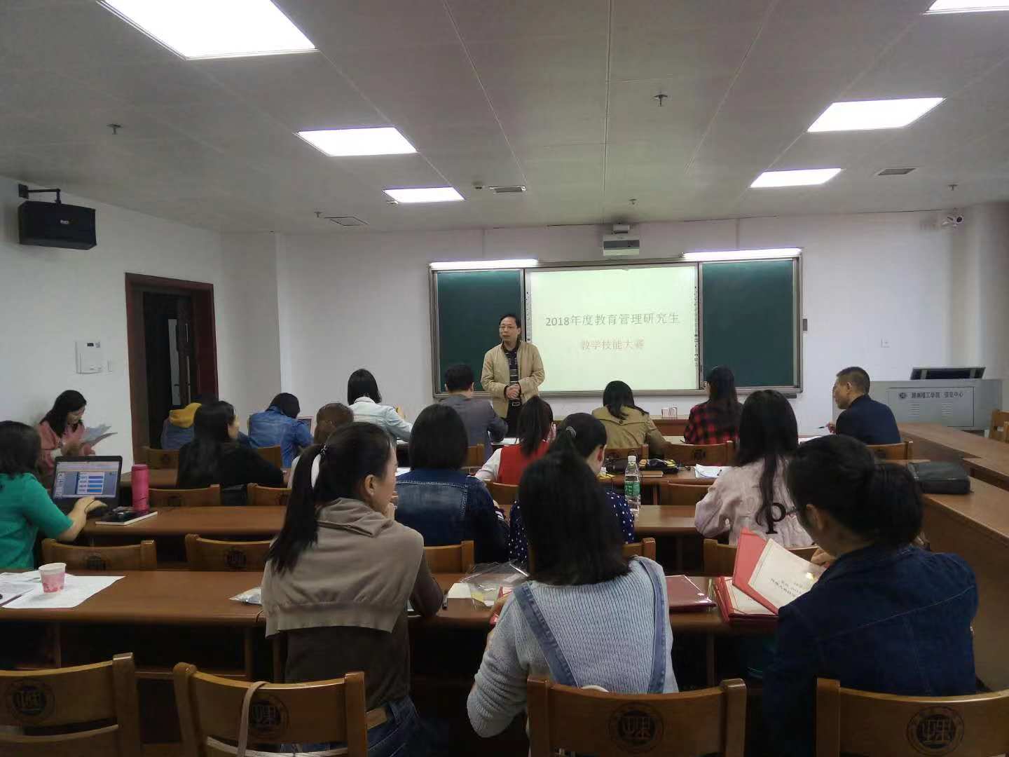 金秋十月底,南湖桂花香。教育硕士齐聚首,教学技能大擂台。10月27日上午,教育科学学院首届教育硕士(教育管理专业)教学技能大赛在12405教室举行。大赛特邀岳阳市第九中学副校长冯新满、科主任任畅,教科院副院长彭阳红、教研室主任洪冬美担任评委。研究生党总支书记李丽荣、教科院院长刘理、党总支书记刘淳松先后赴大赛现场观摩指导,全体教育管理专业硕士研究生参加。大赛由教科院辅导员、教学秘书王炜主持。