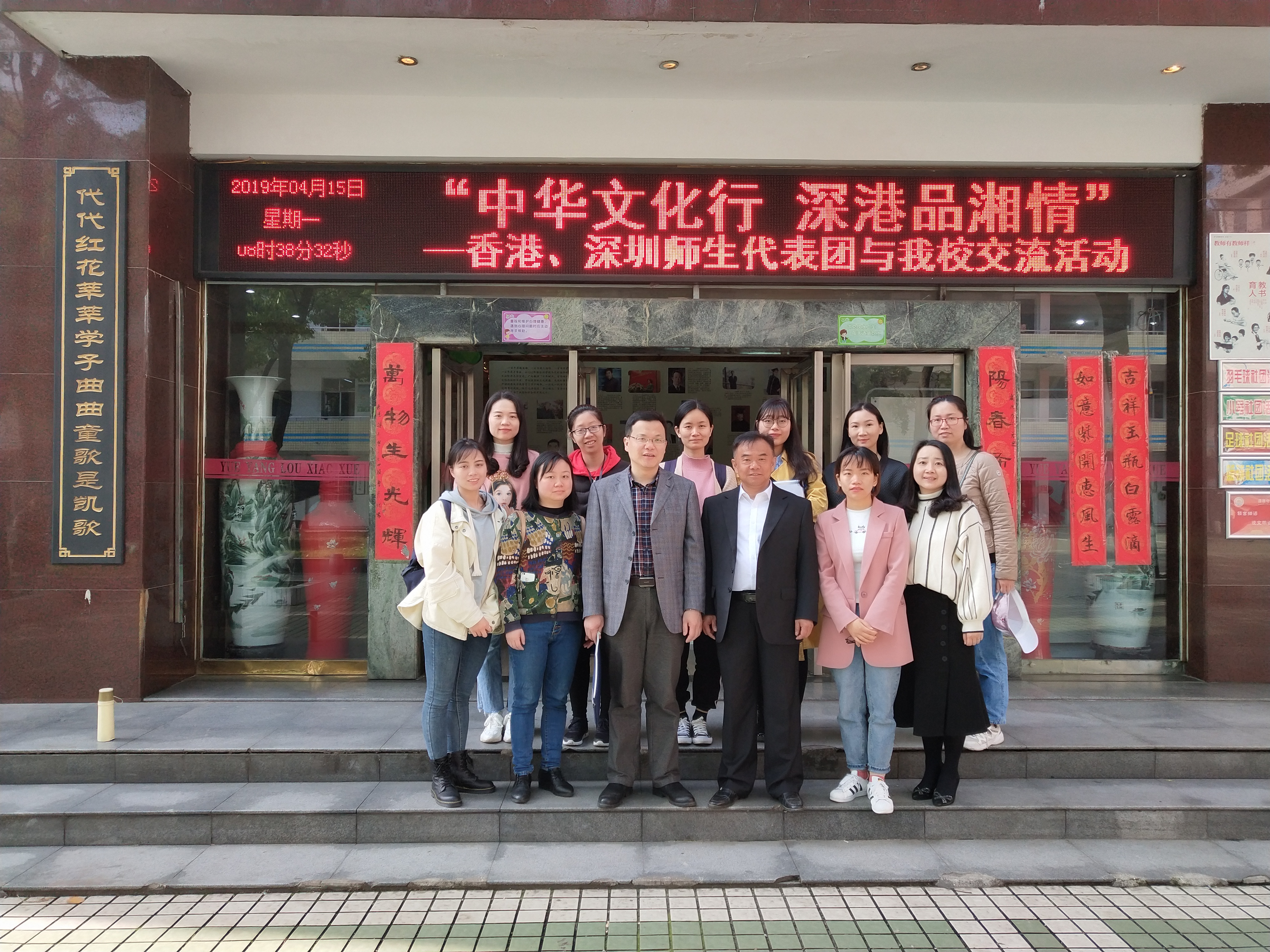 4月15日上午,教育科学学院2018级教育管理专业全体研究生在副院长彭阳红副教授带领下,来到洞庭湖畔的岳阳楼小学,观摩香港、深圳、岳阳三地学校文化交流活动。