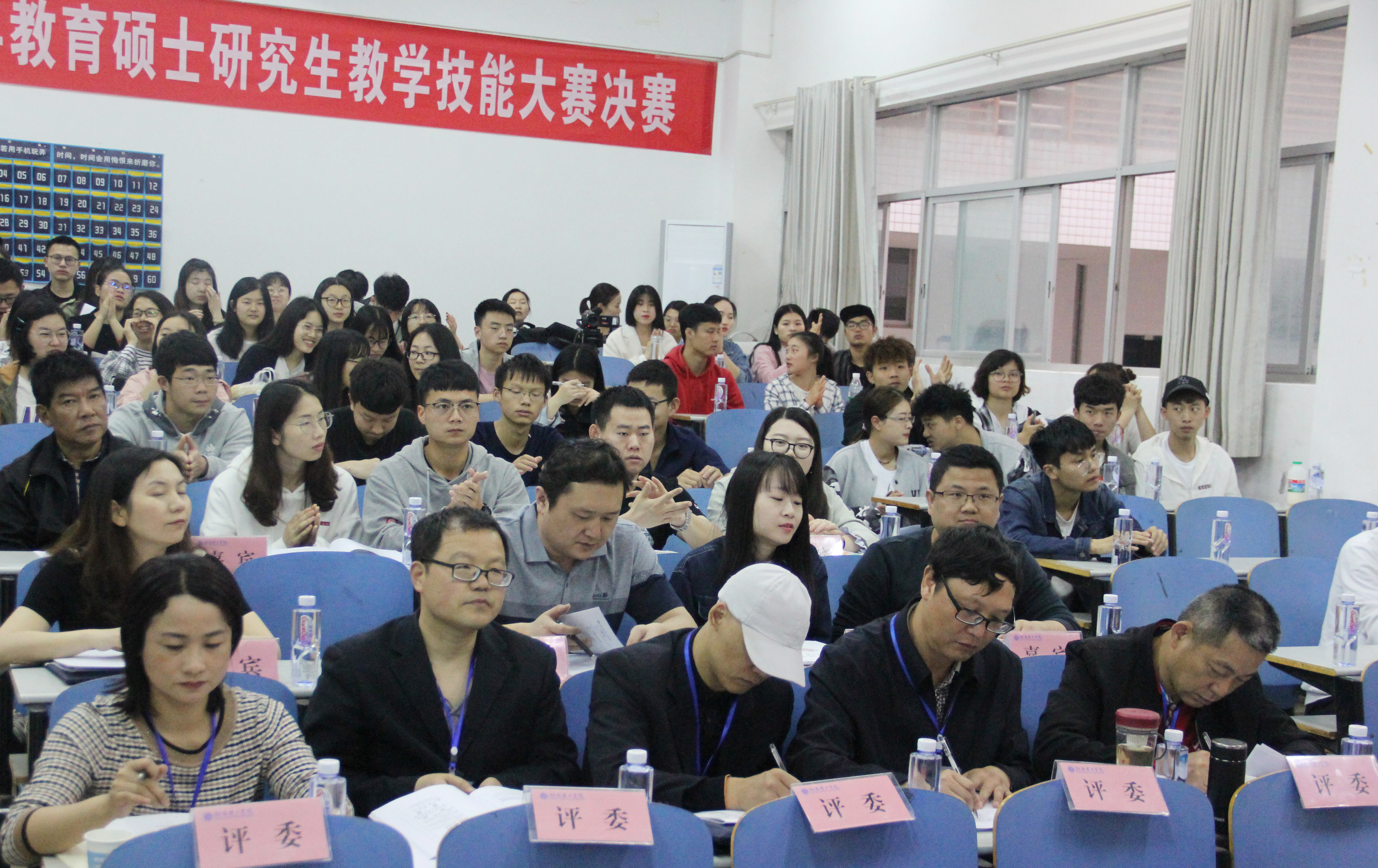 为进一步提高教育硕士的培养质量,完善以提升职业能力为导向的培养模式,增强教育硕士职业岗位胜任能力,421日上午,我校在南院15教学楼举行首届教育硕士教学技能大赛决赛。此次大赛由学校研究生院主办、教育科学学院承办。特邀岳阳市第十五中学教师朱立,岳阳市第九中学教师余海晶、刘兰梅,我校专家范红、阎建辉、吴静、彭阳红、谌安荣、魏瑶、禹辉煌、李奇云担任决赛评委。校党委委员、副校长张国云,教务处处长瞿述,教育科学学院党总支书记刘淳松,研究生院副院长黎振强,中文学院副院长封传兵,外语学院党总支副书记石红芳及各培养单位研究生辅导员和研究生代表到场观摩。研究生院党总支书记李丽荣、教育科学学院院长刘理分别在理科组及文科组致开幕词。