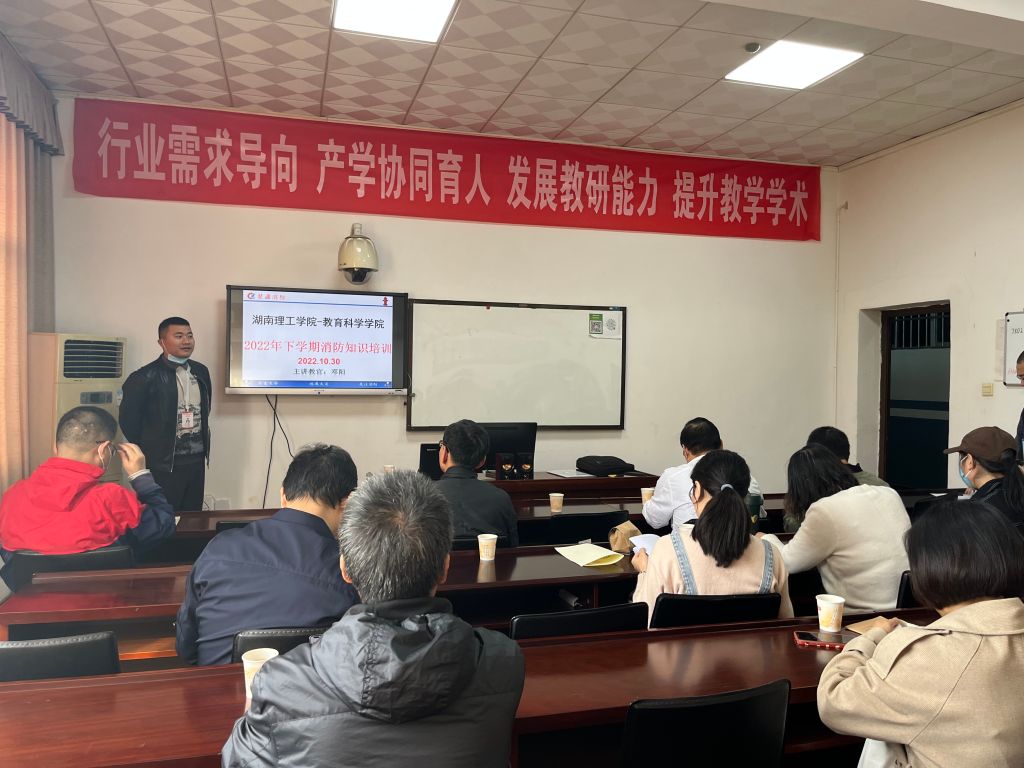 10月30日下午,楚潇消防教管邓阳在1教学楼1303A教室为教育科学学院教师进行消防知识培训。学院全体教师参加。