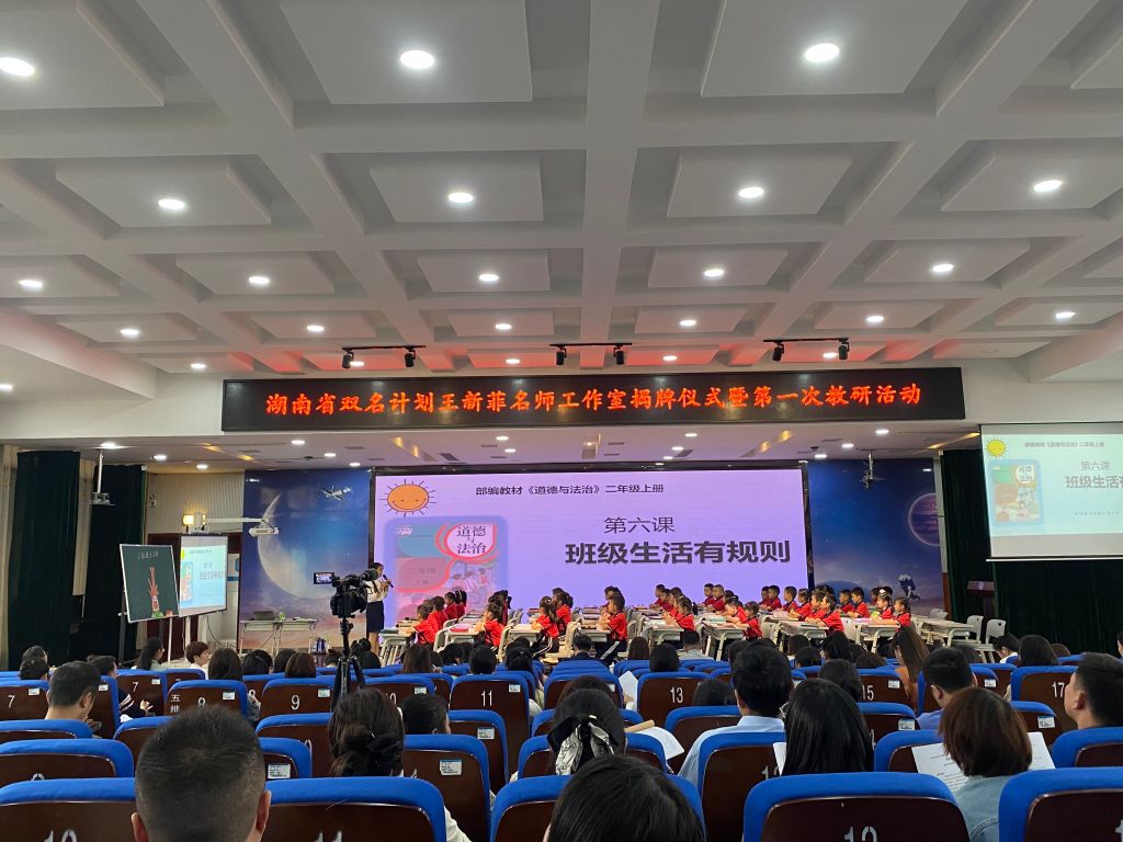 首先,岳阳县月田镇江偄小学的周庆红老师和岳阳市畔湖湾小学的甘烨老师分别展示了《班级生活有规则》和《我们的班规我们定》的课堂教学。两堂课均体现了以情境为载体、以任务为驱动、以学习为中心的思政课堂教学理念。两位老师的教学目标清晰,设计巧妙,实效性强。通过“班级树”和“开盲盒”等多种形式的的活动层层递进,将教材文本演化成了生动的课堂。